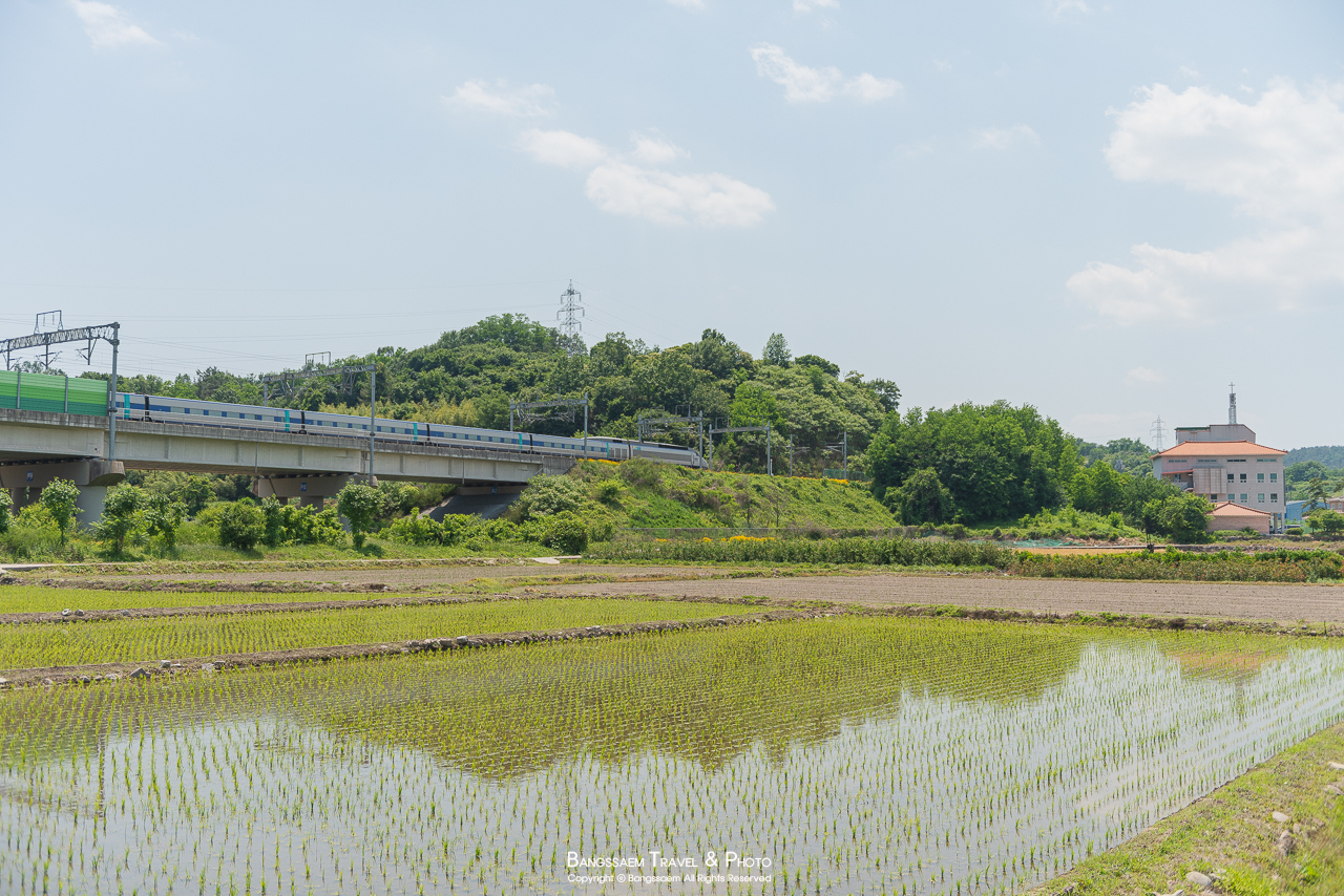 바로 옆에 함안역이 있다 보니 이렇게 기차가 지나는 모습도 만날 수 있는 신개마을이다.