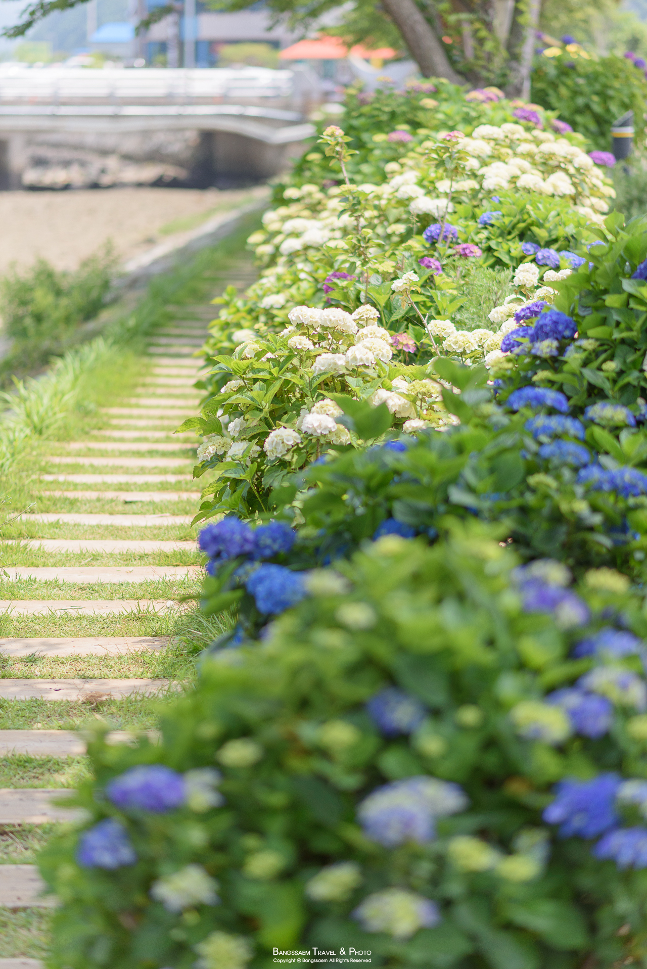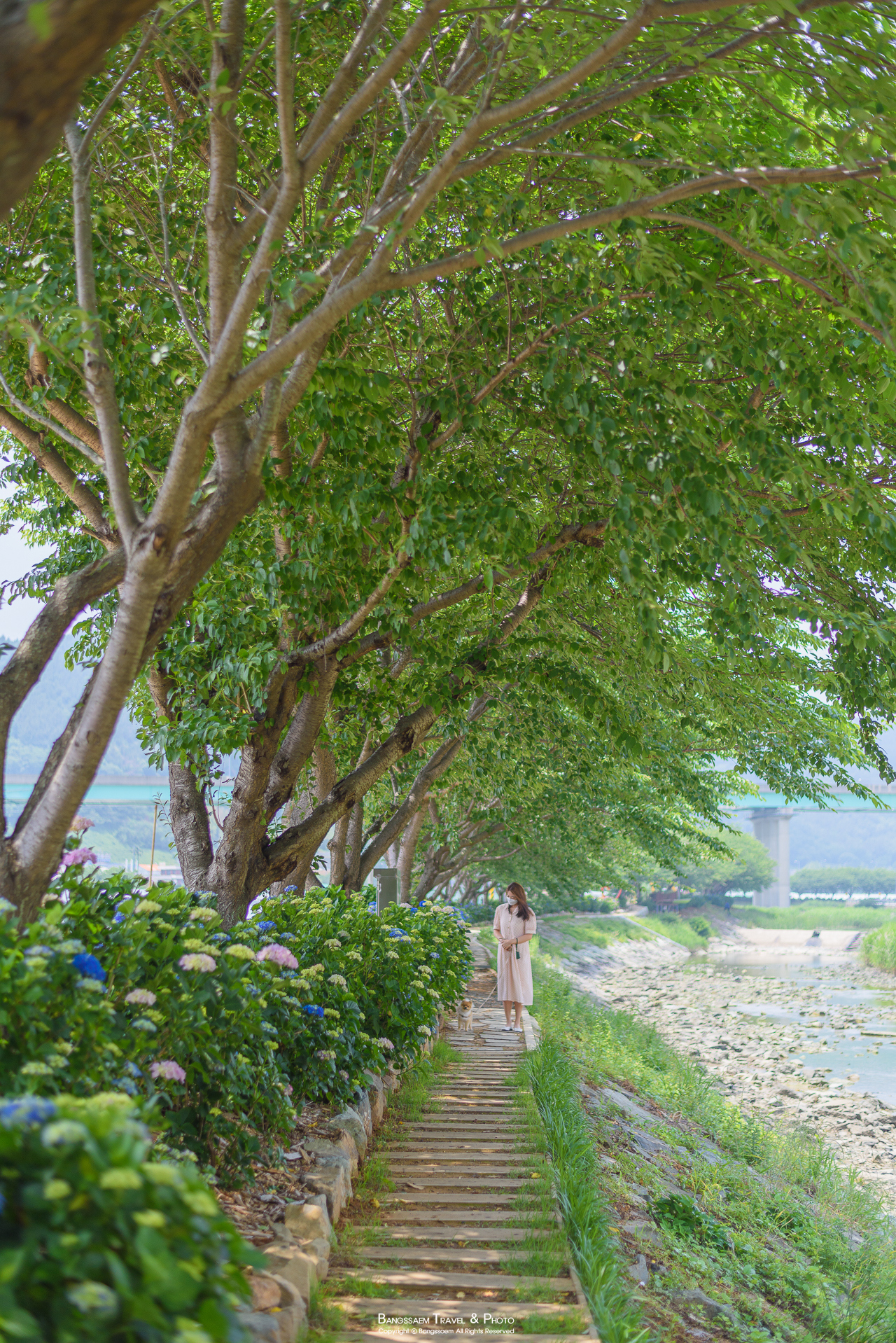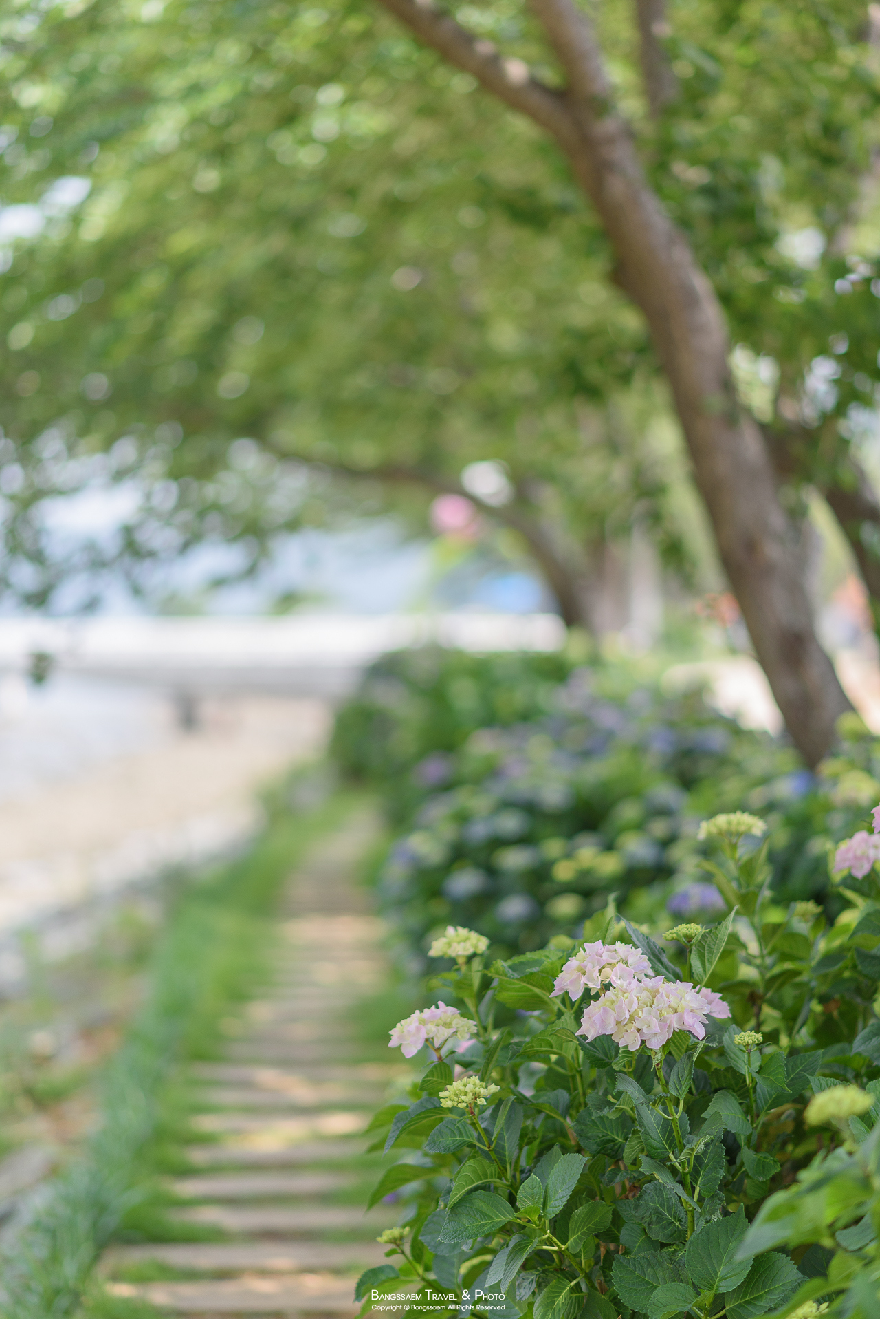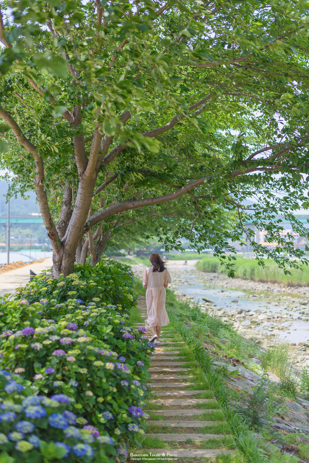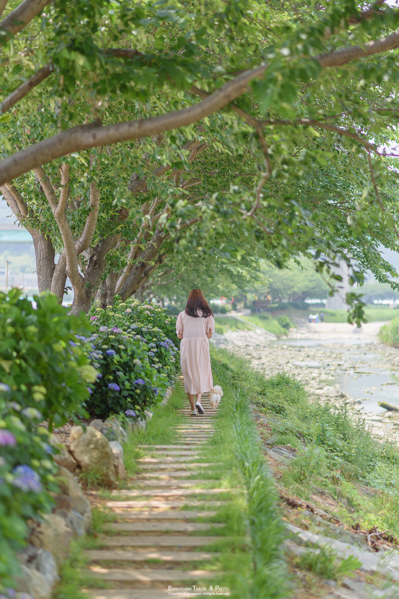 내가 참 좋아하는 곳이다. 수국이 피어있는 길도 너무 예쁘고 옆으로 흘러가는 광도천의 모습도 참 좋다. 그리고 다른 수국 명소들보다는 사람들의 붐빔이 그렇게 심하지는 않은 곳이라 산책 삼아 꼭 한 번은 찾아가는 곳이다. 하지만 최근에는 사람들에게 많이 알려지면서 주말에는 꽤 많은 사람들이 몰리게 된 곳이다. 살짝 안타까운 마음은 들지만 시간대만 잘 고르면 사람들 붐비지 않는 한산한 수국 길을 걸으며 수국과의 행복한 데이트를 즐길 수 있다.