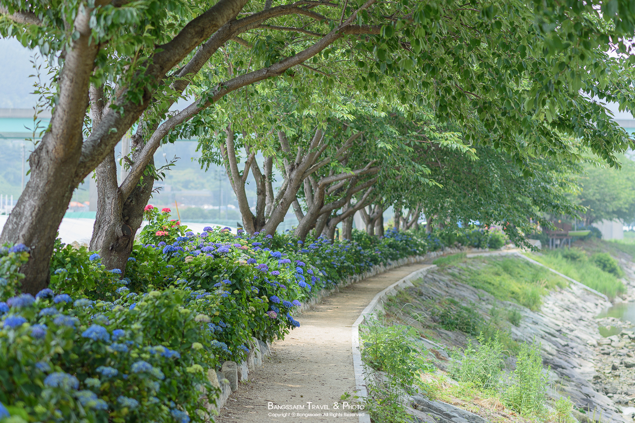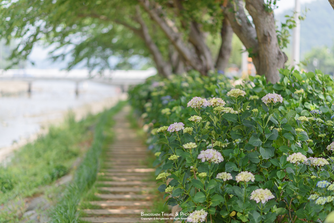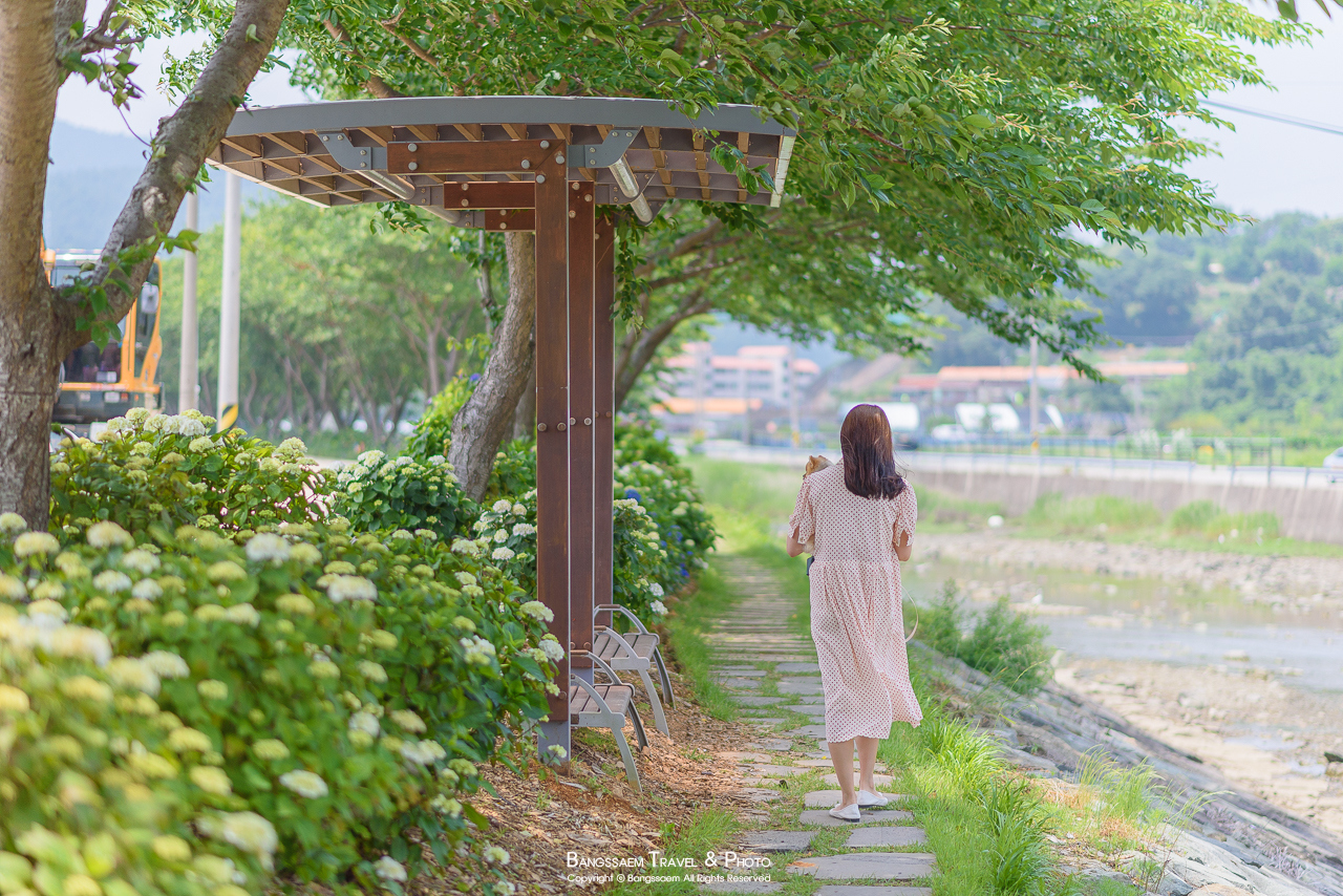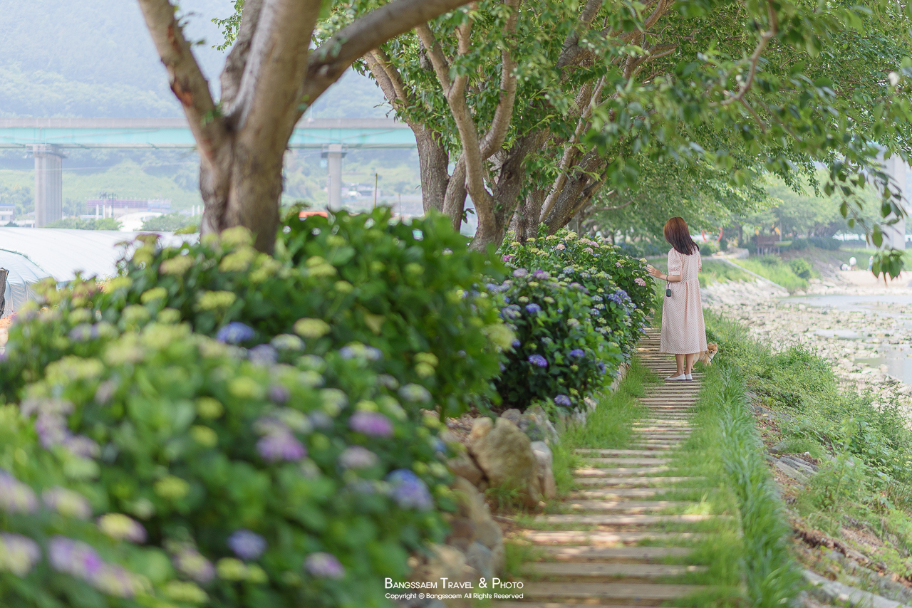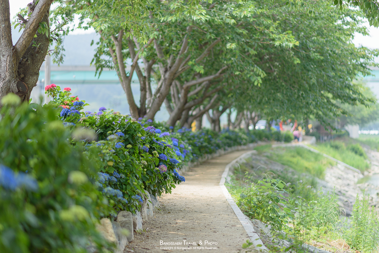 내가 참 좋아하는 곳이다. 수국이 피어있는 길도 너무 예쁘고 옆으로 흘러가는 광도천의 모습도 참 좋다. 그리고 다른 수국 명소들보다는 사람들의 붐빔이 그렇게 심하지는 않은 곳이라 산책 삼아 꼭 한 번은 찾아가는 곳이다. 하지만 최근에는 사람들에게 많이 알려지면서 주말에는 꽤 많은 사람들이 몰리게 된 곳이다. 살짝 안타까운 마음은 들지만 시간대만 잘 고르면 사람들 붐비지 않는 한산한 수국 길을 걸으며 수국과의 행복한 데이트를 즐길 수 있다.