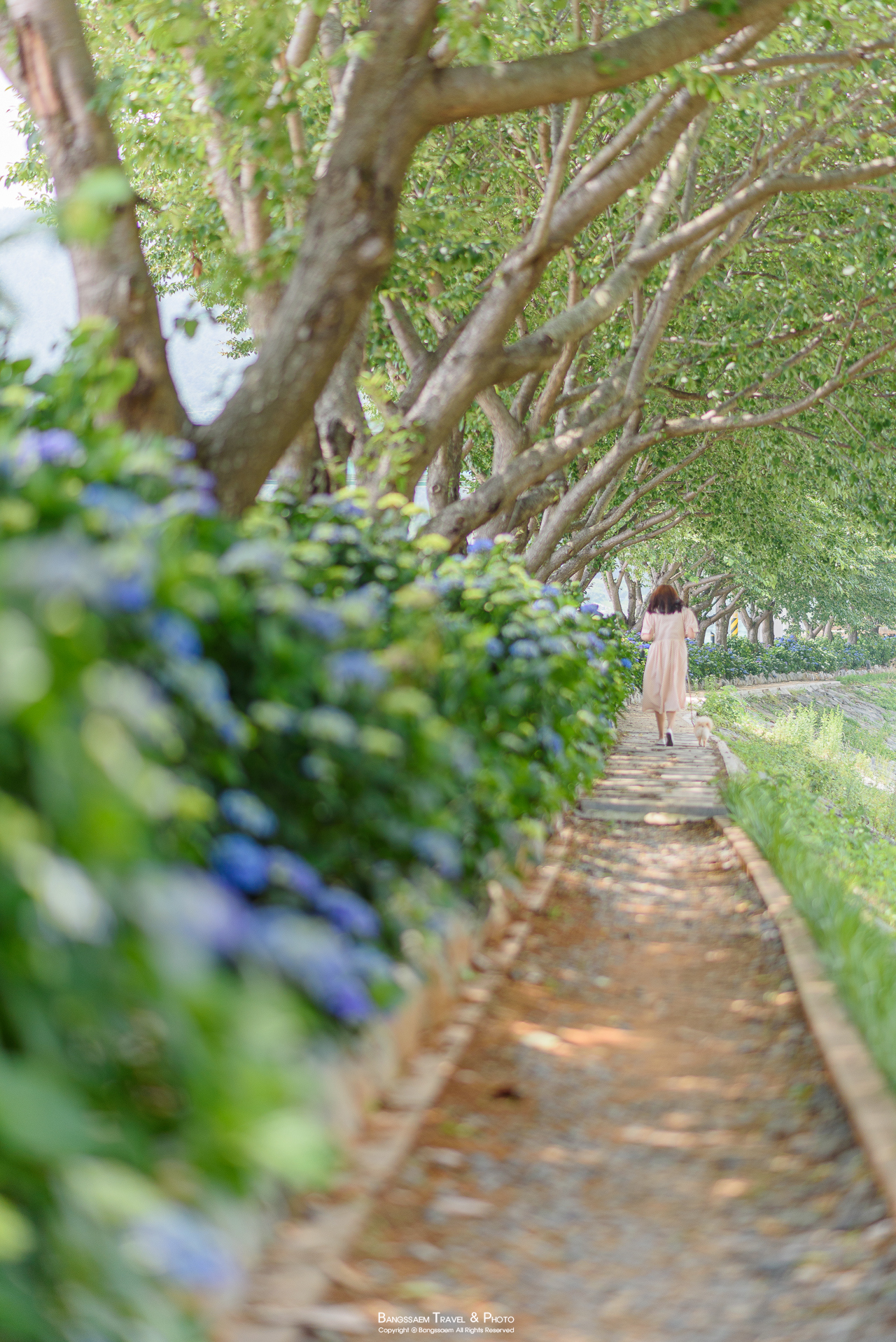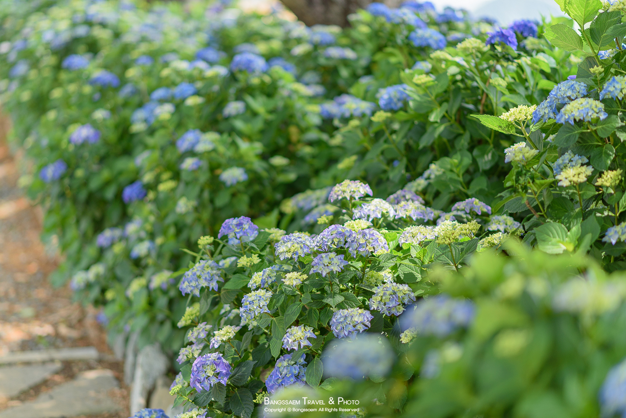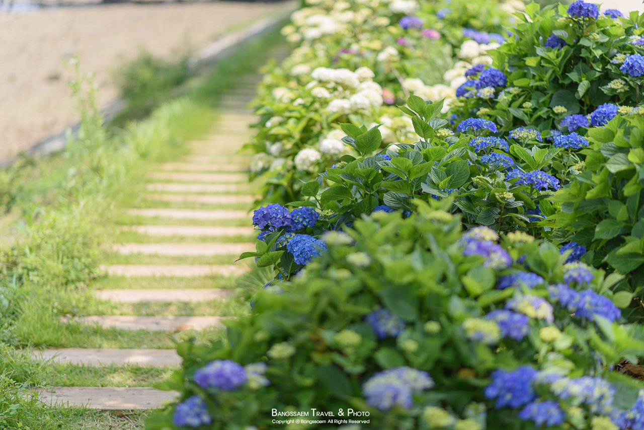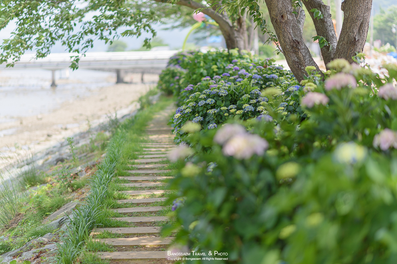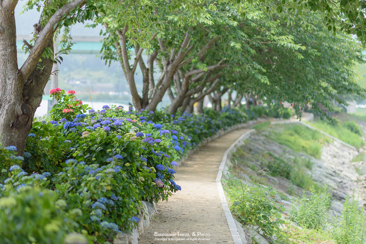 내가 참 좋아하는 곳이다. 수국이 피어있는 길도 너무 예쁘고 옆으로 흘러가는 광도천의 모습도 참 좋다. 그리고 다른 수국 명소들보다는 사람들의 붐빔이 그렇게 심하지는 않은 곳이라 산책 삼아 꼭 한 번은 찾아가는 곳이다. 하지만 최근에는 사람들에게 많이 알려지면서 주말에는 꽤 많은 사람들이 몰리게 된 곳이다. 살짝 안타까운 마음은 들지만 시간대만 잘 고르면 사람들 붐비지 않는 한산한 수국 길을 걸으며 수국과의 행복한 데이트를 즐길 수 있다.