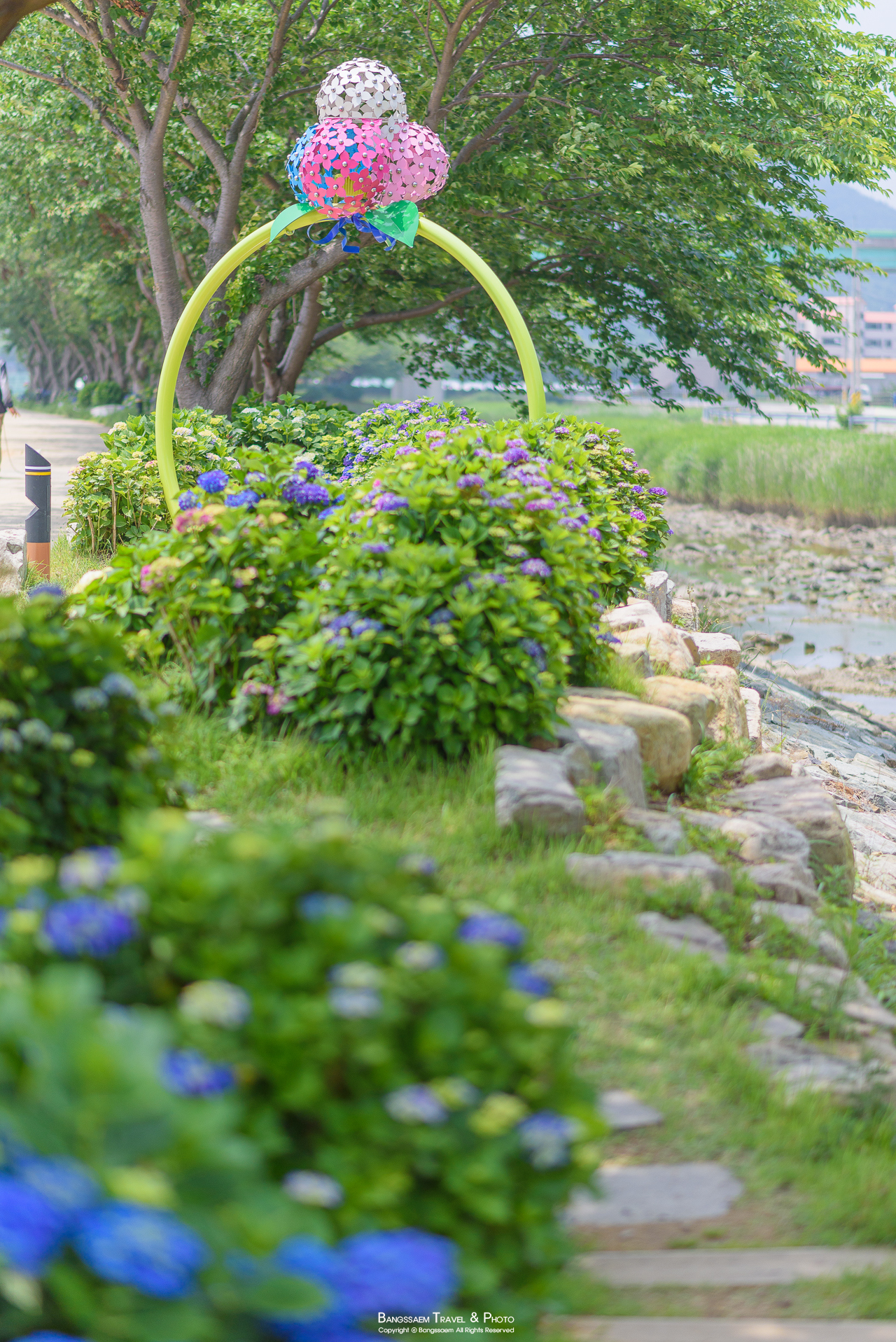 경남 통영 광도천에도 이렇게 예쁜 수국 길이 있다.