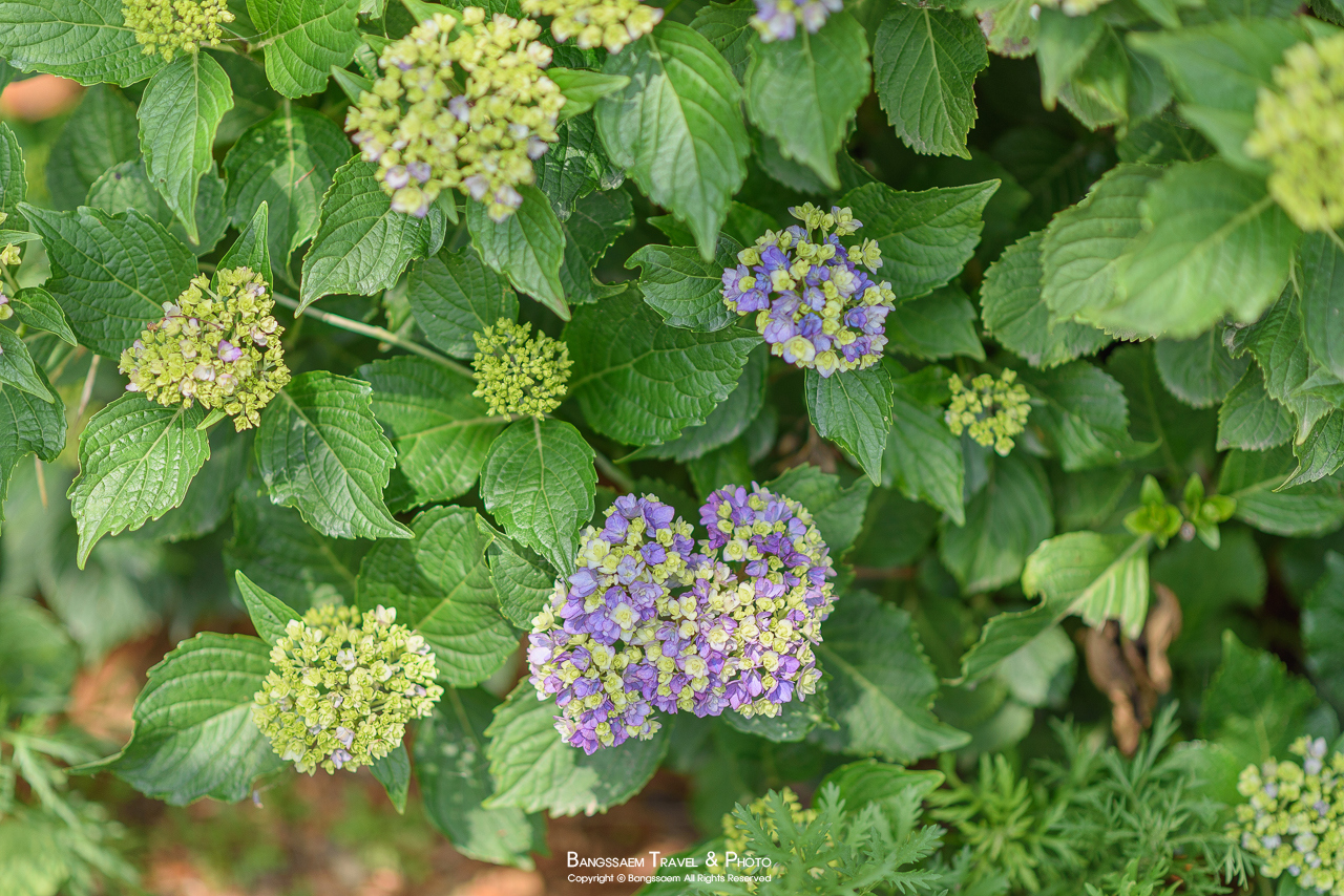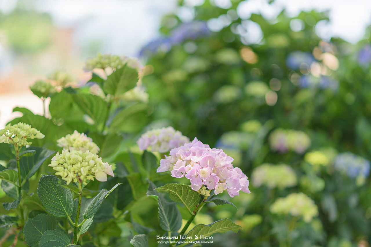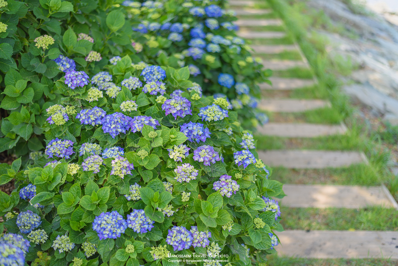 하얀색, 파란색, 그리고 보라색, 이렇게 다양한 색의 수국들을 한 자리에서 만날 수 있다는 것 또한 통영 광도천 수국 길의 매력 중 하나이다.