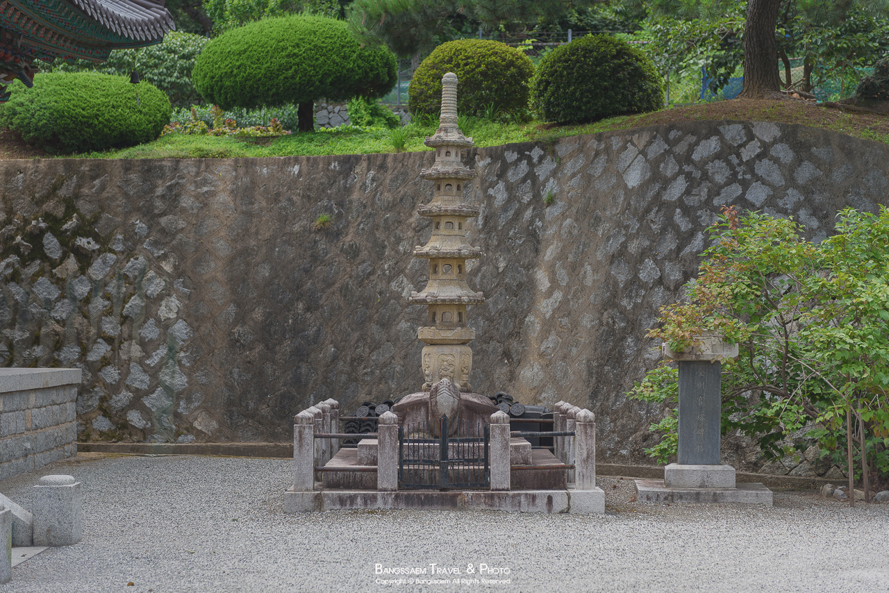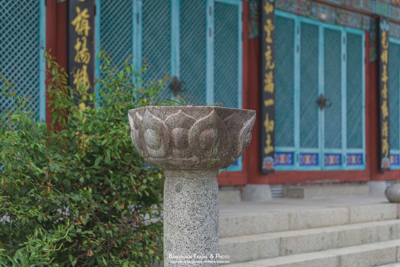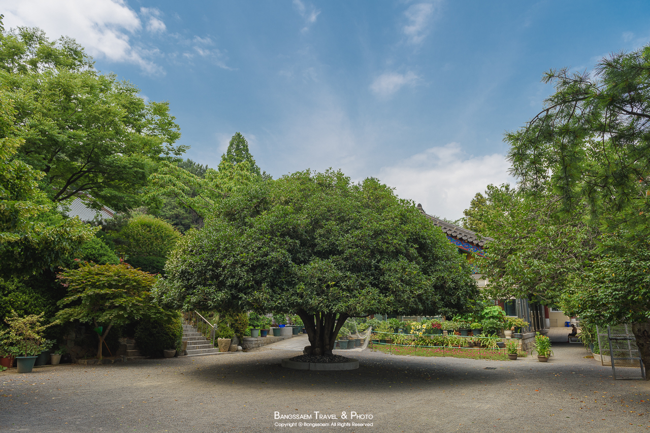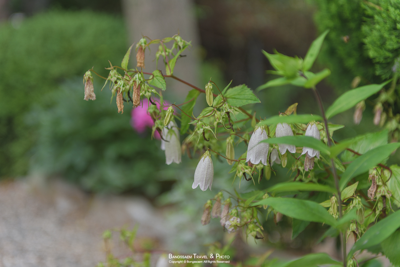대웅전 앞에서 아래쪽으로 내려가는 길목에는 파란색 수국이 예쁘게 피어있다. 아직 다 피지 않은 건가? 아니면 냉해로 많은 수의 수국들이 꽃을 피우지 못한 건가? 그 모습이 작년과는 많이 다르다.