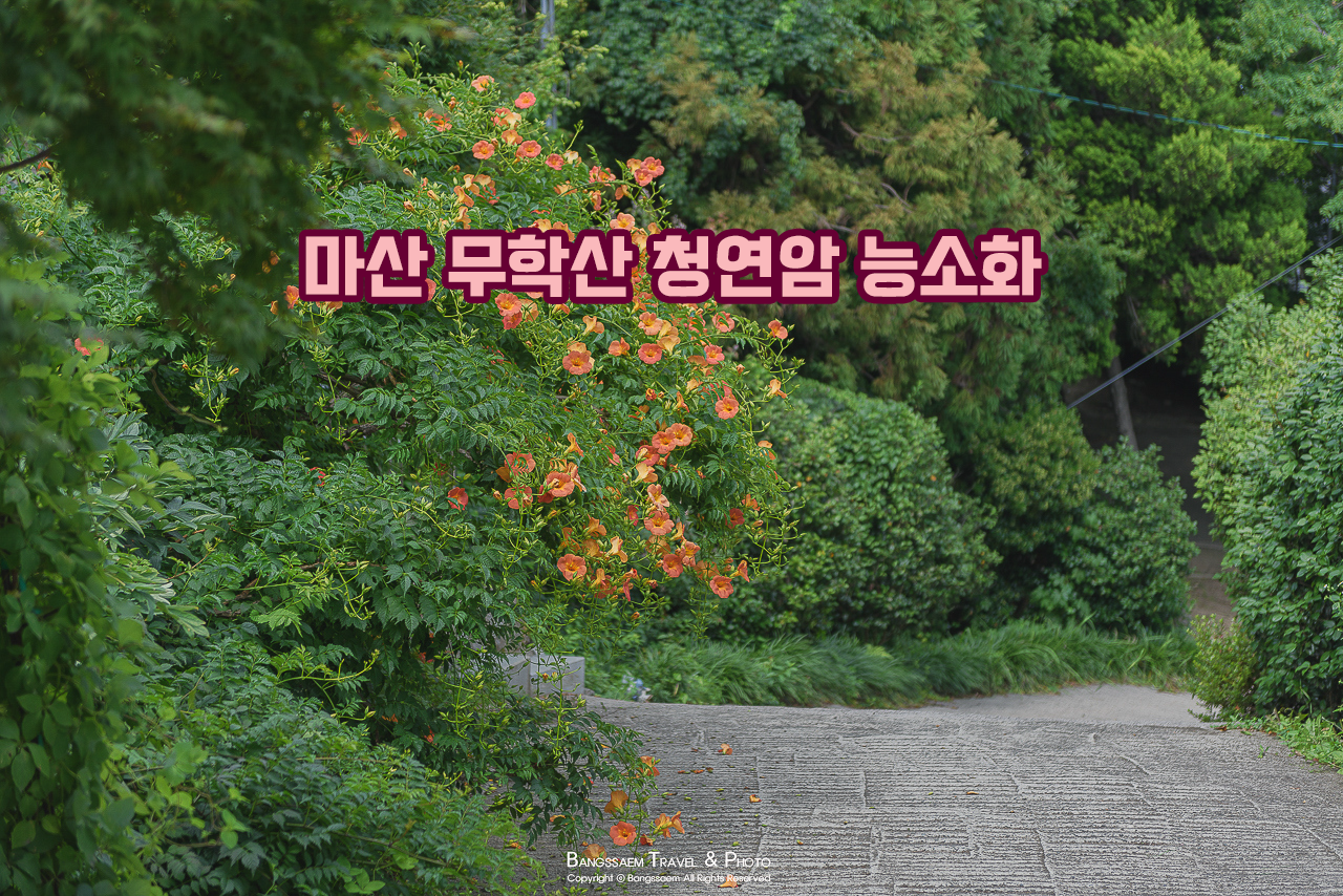 창원, 마산의 능소화 명소 중 한 곳? 예전 봄이 시작되던 시기에 몇 번 소개를 한 곳이다. 창원시 마산합포구 무학산 자락에 위치한 작은 사찰 청연암, 봄에는 하얀색, 분홍색 매화가 예쁘게 피어있던 곳이다. 여기 이 마산 청연암이 여름이 되면 수국, 능소화도 만나볼 수 있는 곳이다. 집에서 10분 거리에 있는 무학산 청연암, 이번에는 능소화를 만나러 잠시 오전 산책을 다녀왔다.