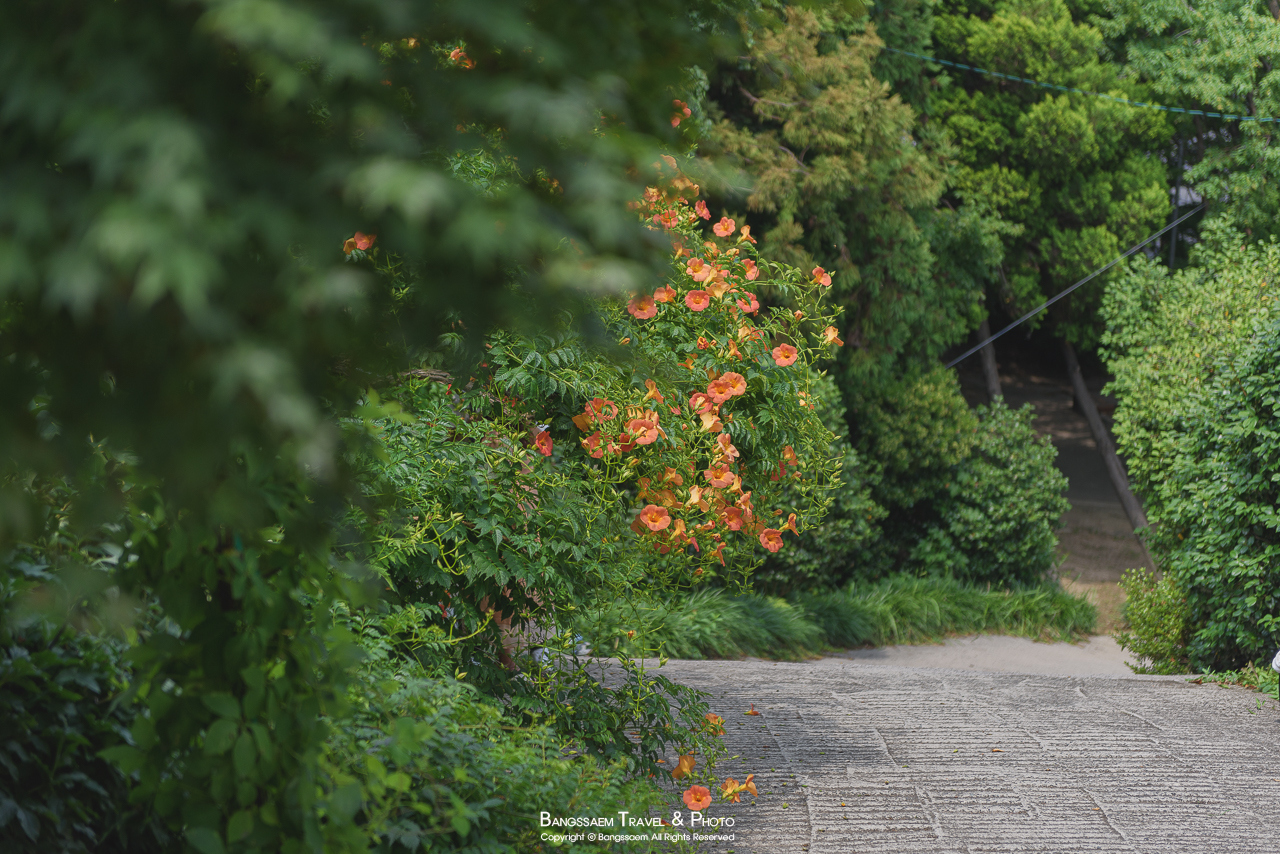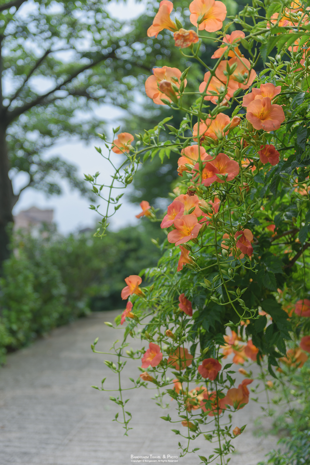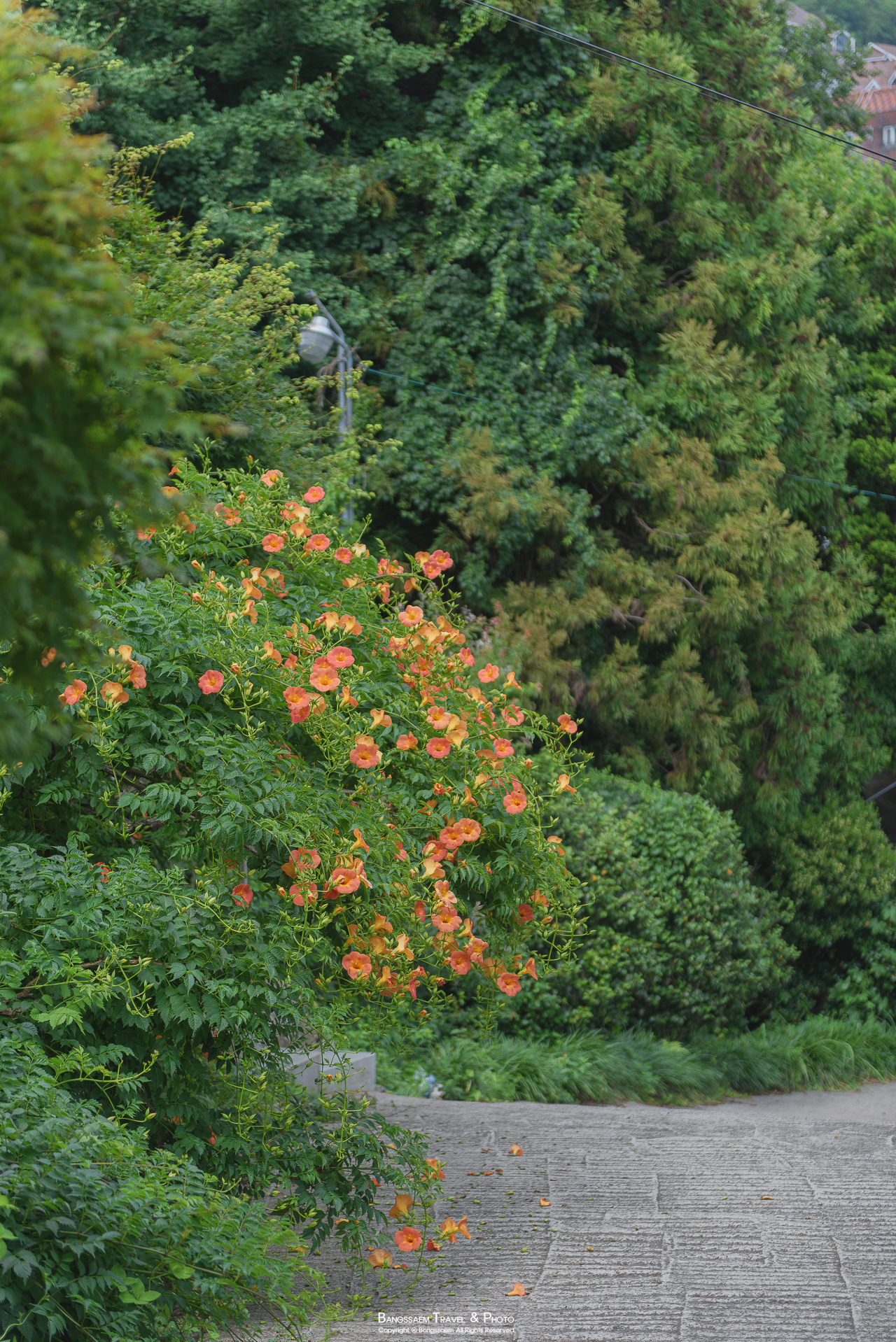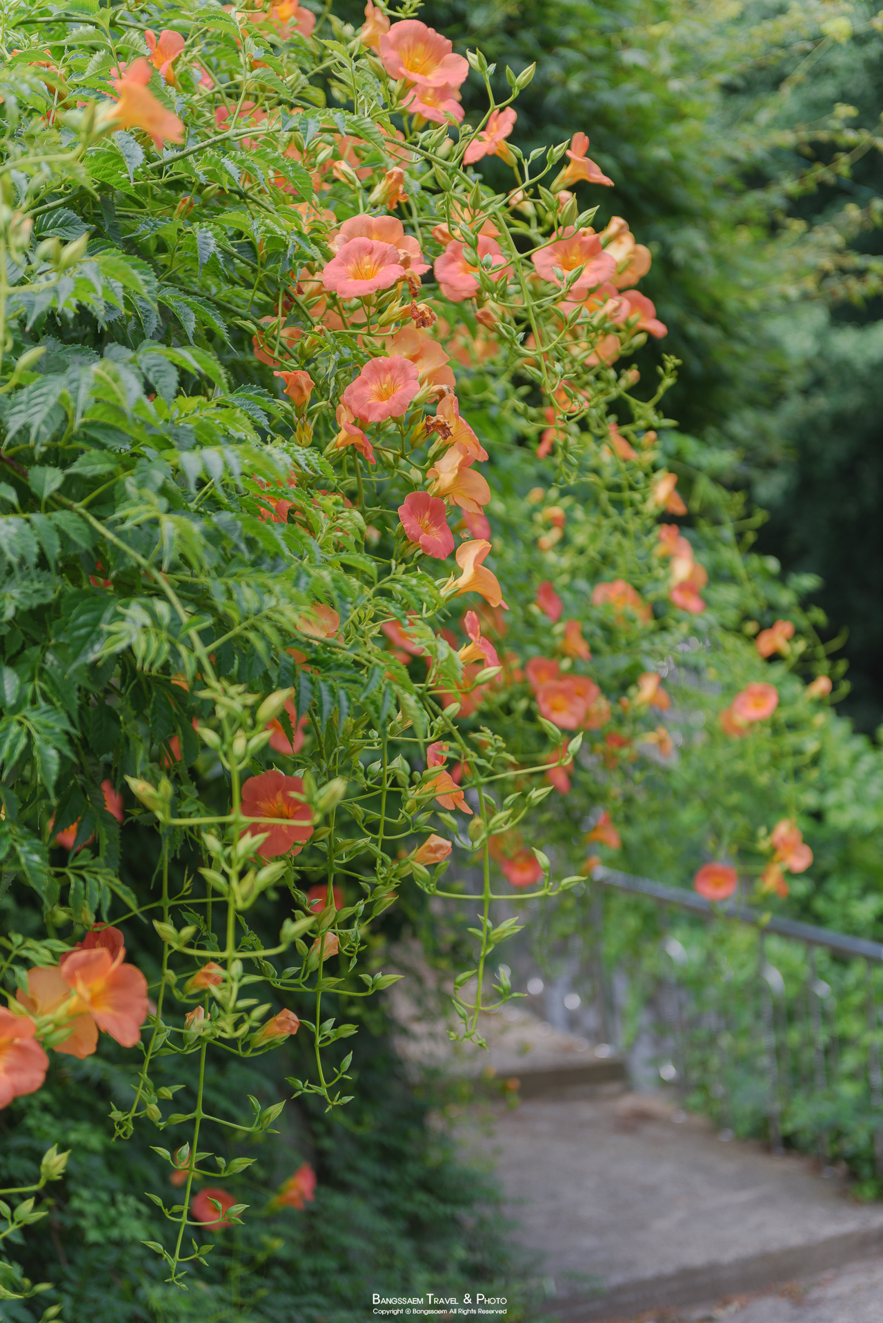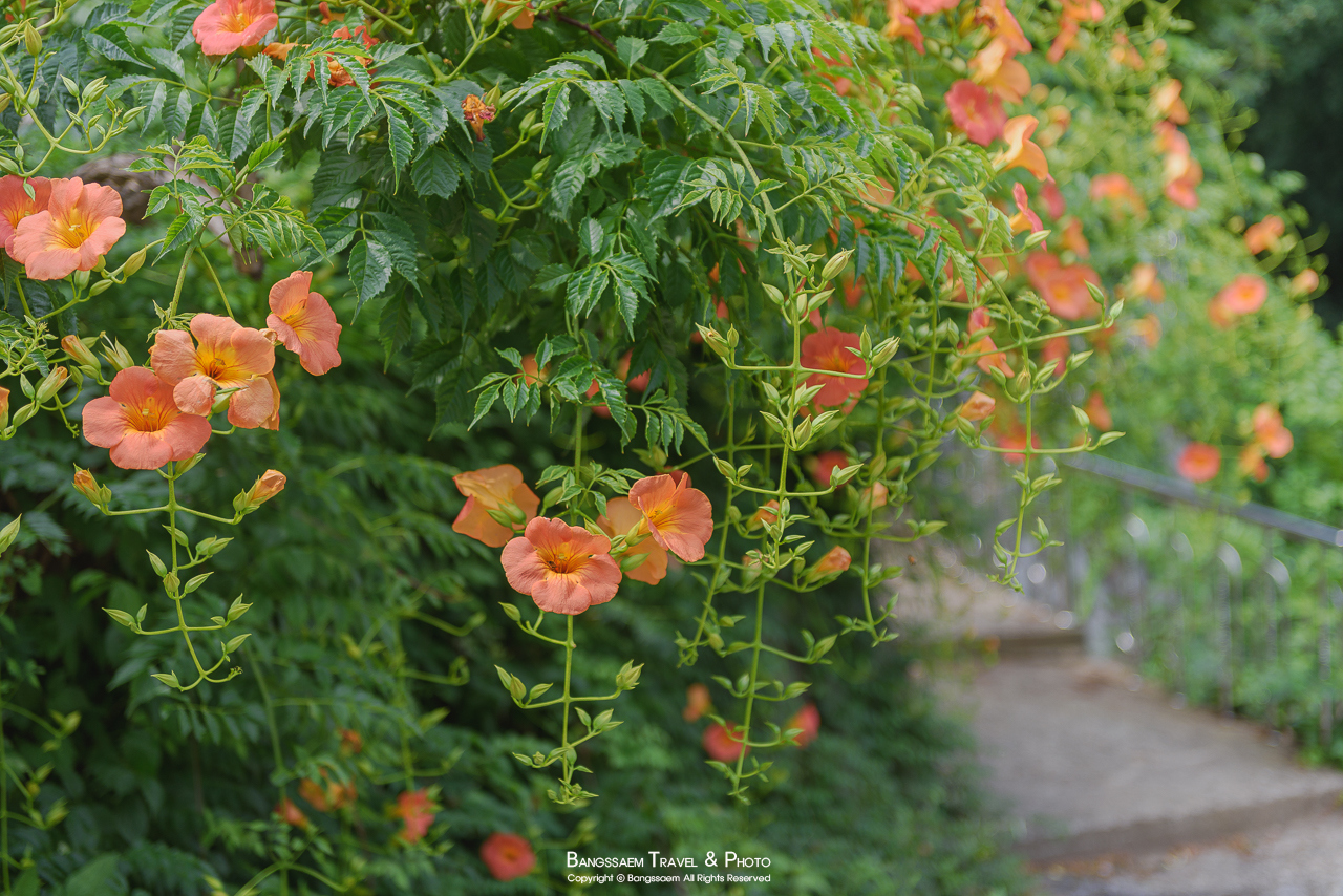 그 아래쪽에 이렇게 능소화가 예쁘게 피어있다. 내가 처음 도착했을 때는 사람이 한 명도 없었는데 내가 도착한 직후에 여기 능소화와 함께 사진을 찍으러 온 사람들이 도착했다. 시간도 넉넉하고 다른 약속도 없는 날이라 그 두 사람이 사진을 다 찍고 자리를 비우기까지 그냥 근처를 서성이며 기다렸다. 이런 여유로움도 오랜만에 가져보는 것 같아 그 느낌이 나쁘지는 않았다.
