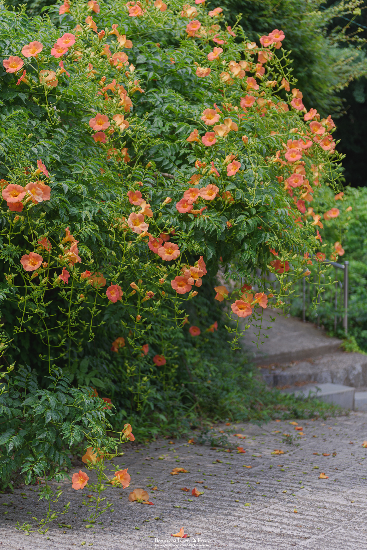 이제 수국은 조금씩 시들기 시작하고 그 빈자리를 능소화가 채워주고 있다. 내가 살고 있는 경남 창원에도 능소화가 예쁘게 피는 장소들이 몇 곳 있다. 아쉽게도 규모가 그렇게 큰 편은 아니다. 그래도 능소화의 매력을 느낄 수 있는 장소들이 집 가까이에도 몇 곳 있다는 것에 감사한 위안을 얻는다. 멀리 떠나지 않아도 창원 내에서 능소화를 만날 수 있으니까.