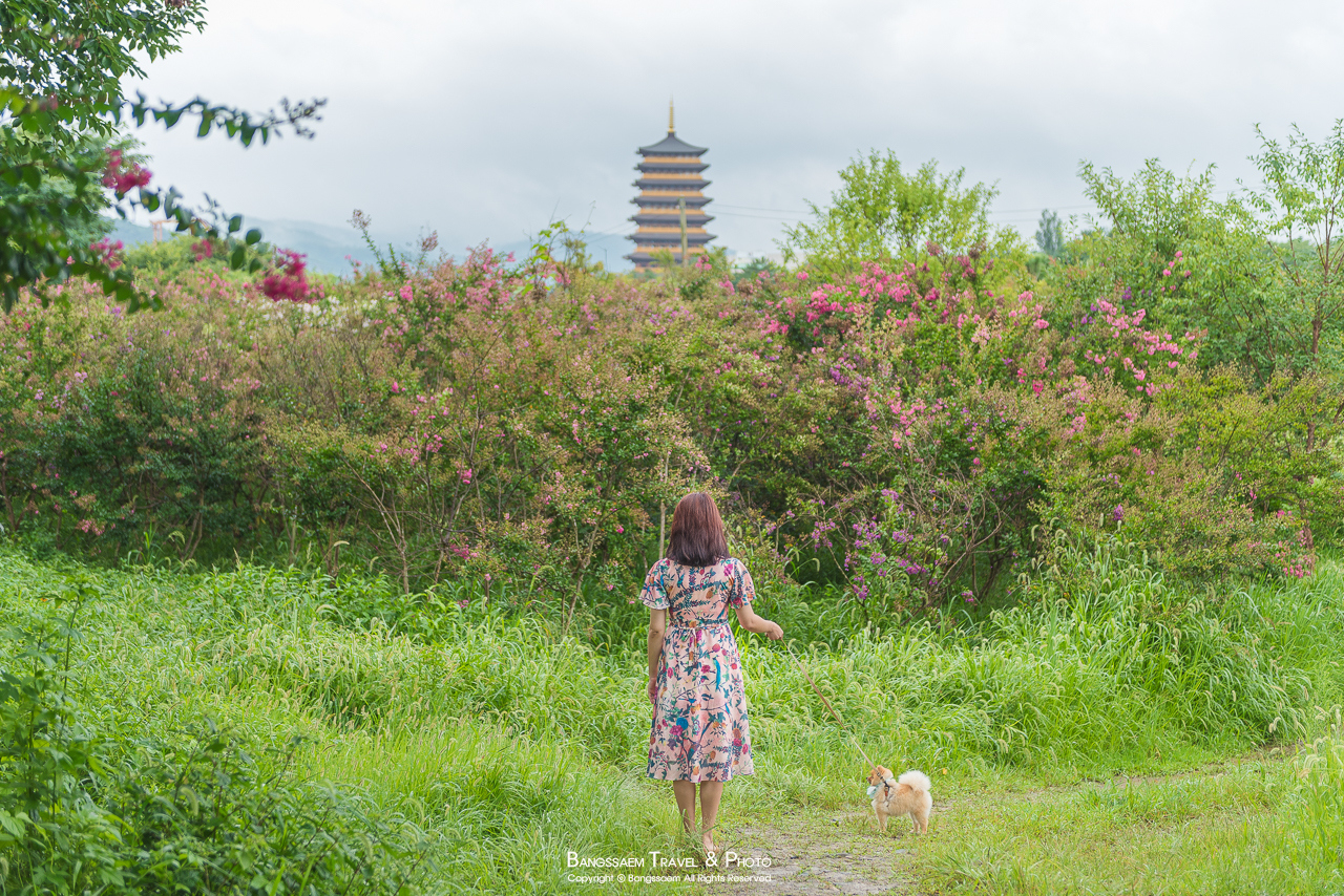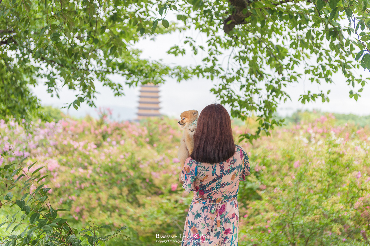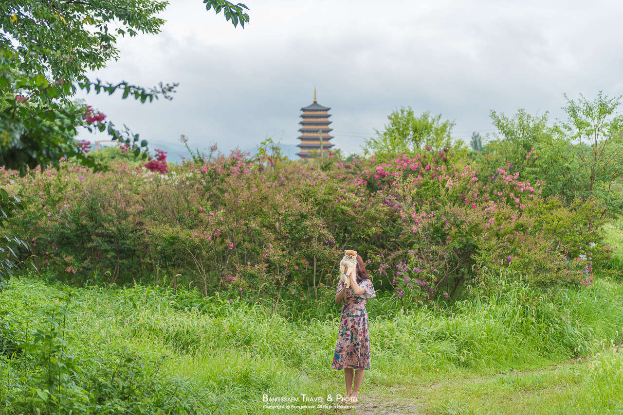 오랜만에 떠나는 즐거운 경주 여행. 아마도 올해 사진을 취미로 하는 사람들에게 가장 인기 있는 장소들 중 하나가 아닐까 생각된다. 황룡사 9층 목탑을 모티브로 지어진 숙소 황룡원, 그 황룡원을 배경으로 멋진 배롱나무 군락을 사진으로 담을 수 있는 곳이 있다. 경주를 상징하는 건물들 중 하나 황룡원, 그리고 여름이라는 계절을 상징하는 꽃들 중 하나인 배롱나무, 그 둘을 한 프레임에 담을 수 있다는 것만으로도 충분히 매력적인 곳이라 생각한다.