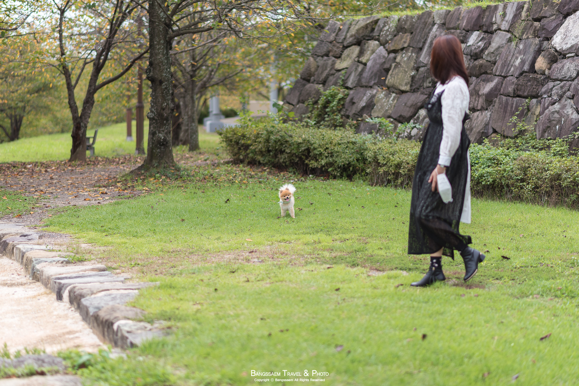 (사람이 전혀 없어서 잠시 목줄을 풀었고, 저~~~~ 멀리에서라도 사람이 보이면 바로 목줄을 채웁니다.)