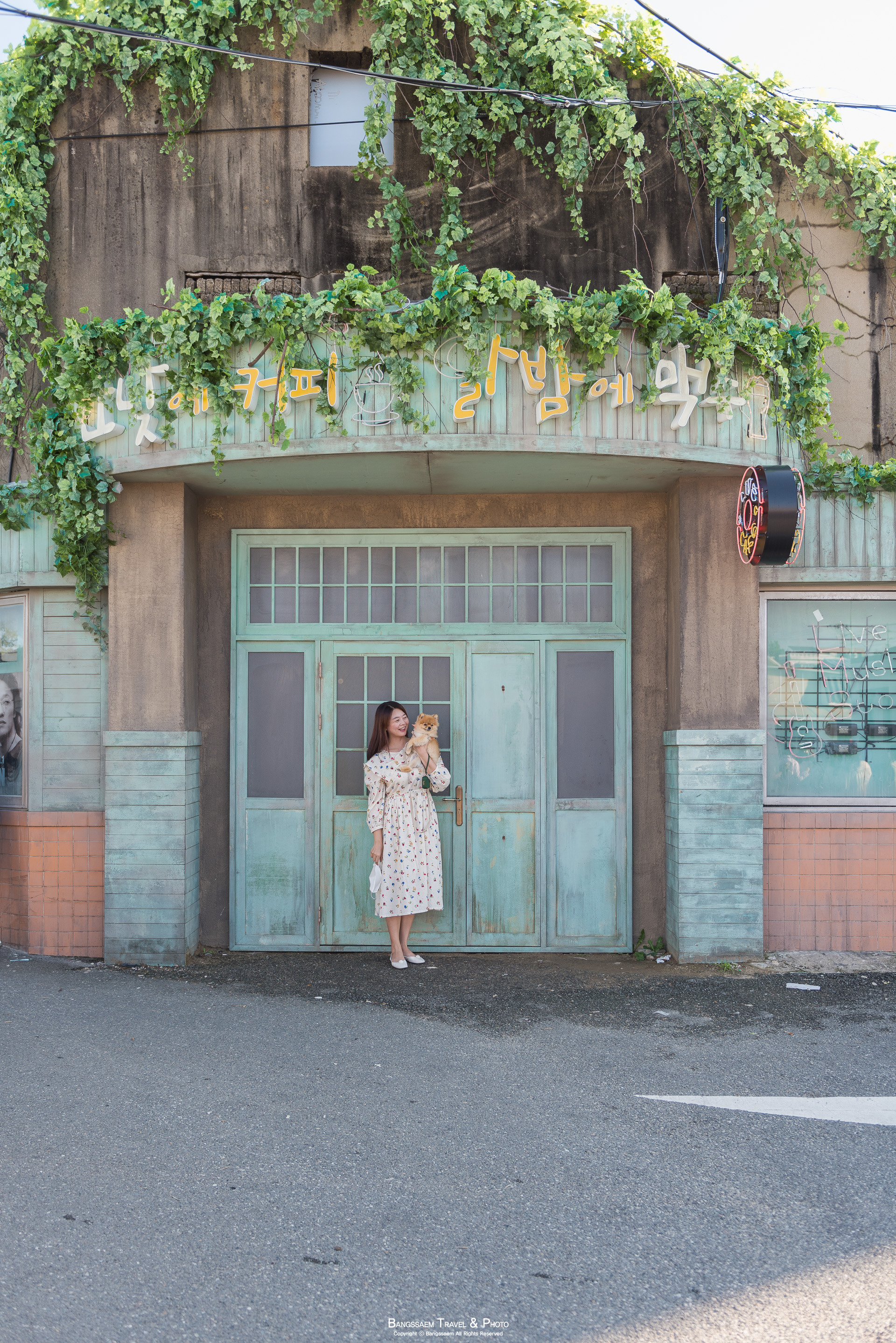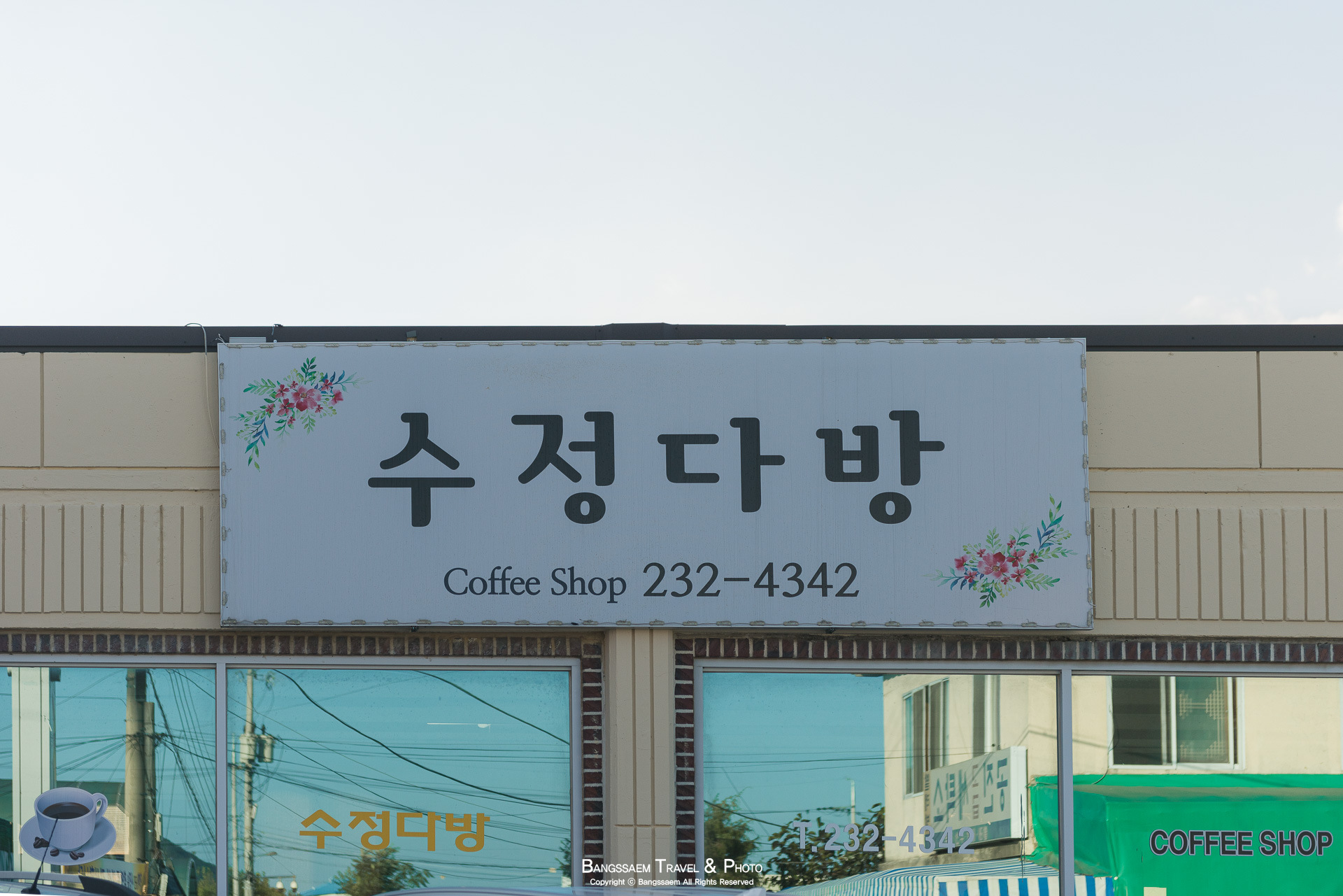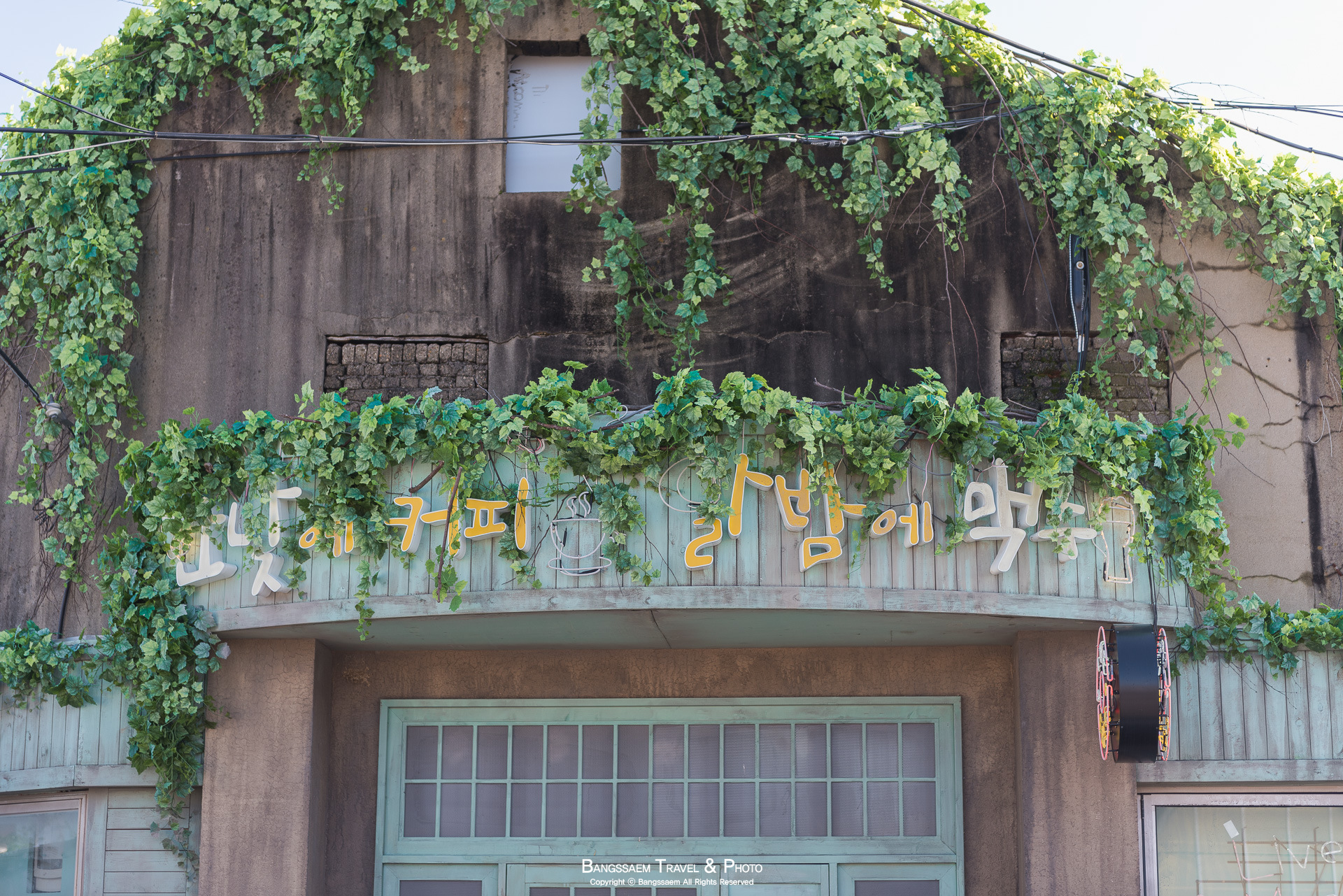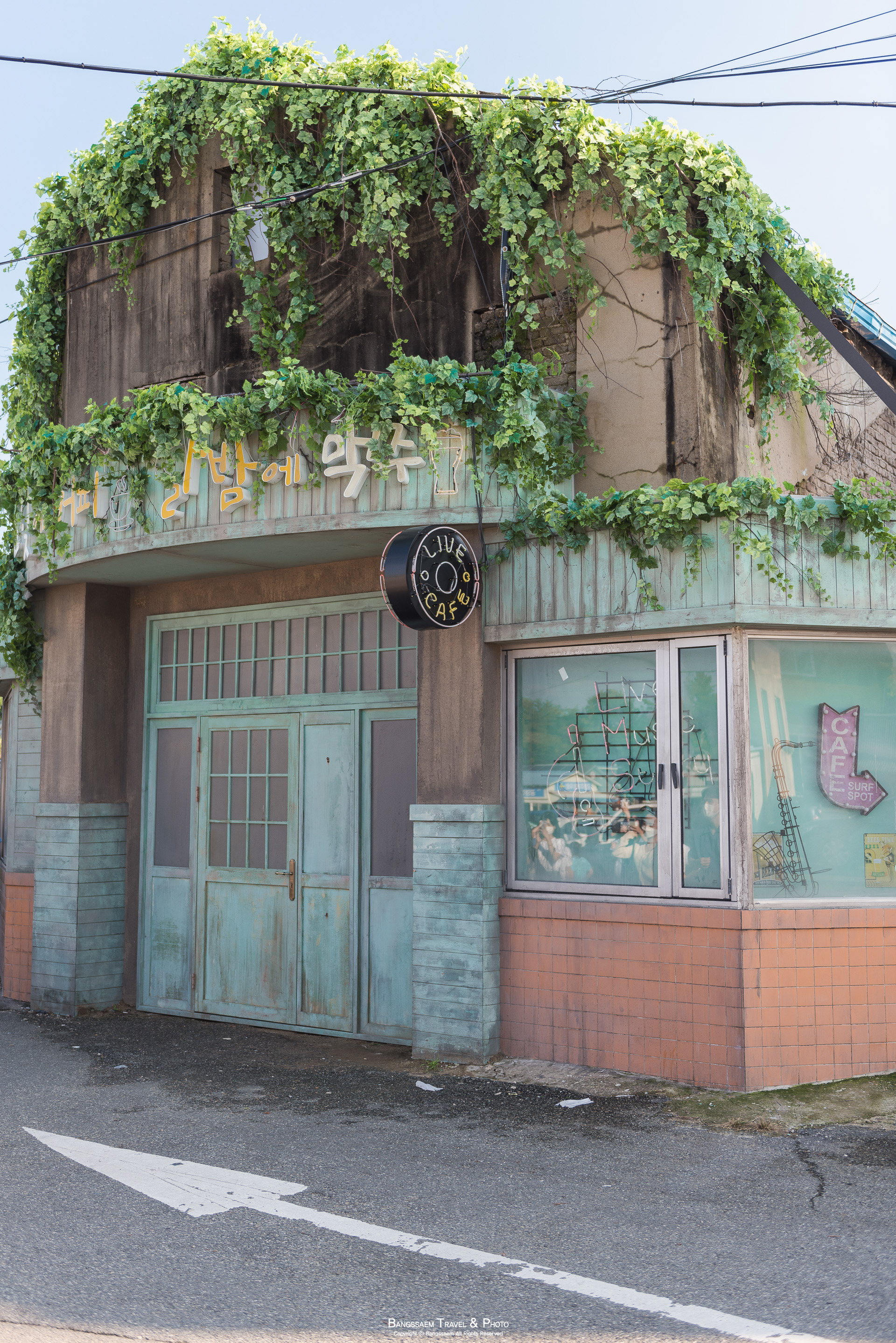 한 사람이 사진을 찍고, 다음 사람이 들어가기 전에 잽싸게 담아보는 카페 정면 모습.