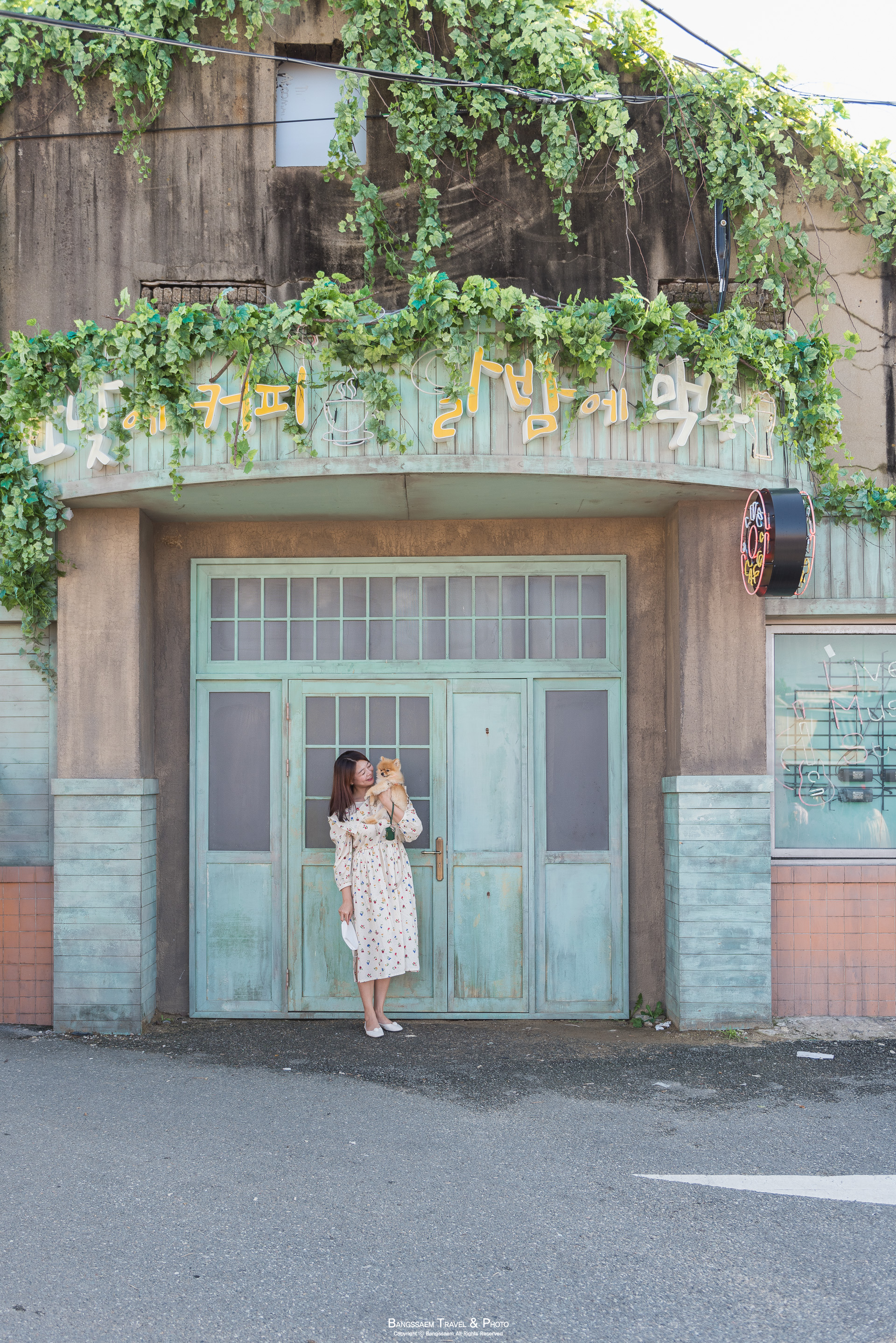 우리도 한낮에 커피, 달밤에 맥주 카페 앞에서 포항 공진시장 방문 인증 사진을 담아본다.