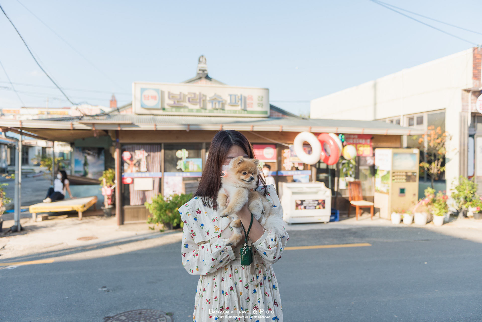 청하시장 보라슈퍼를 배경으로 우리 방방이도 인증 사진 한 장.
