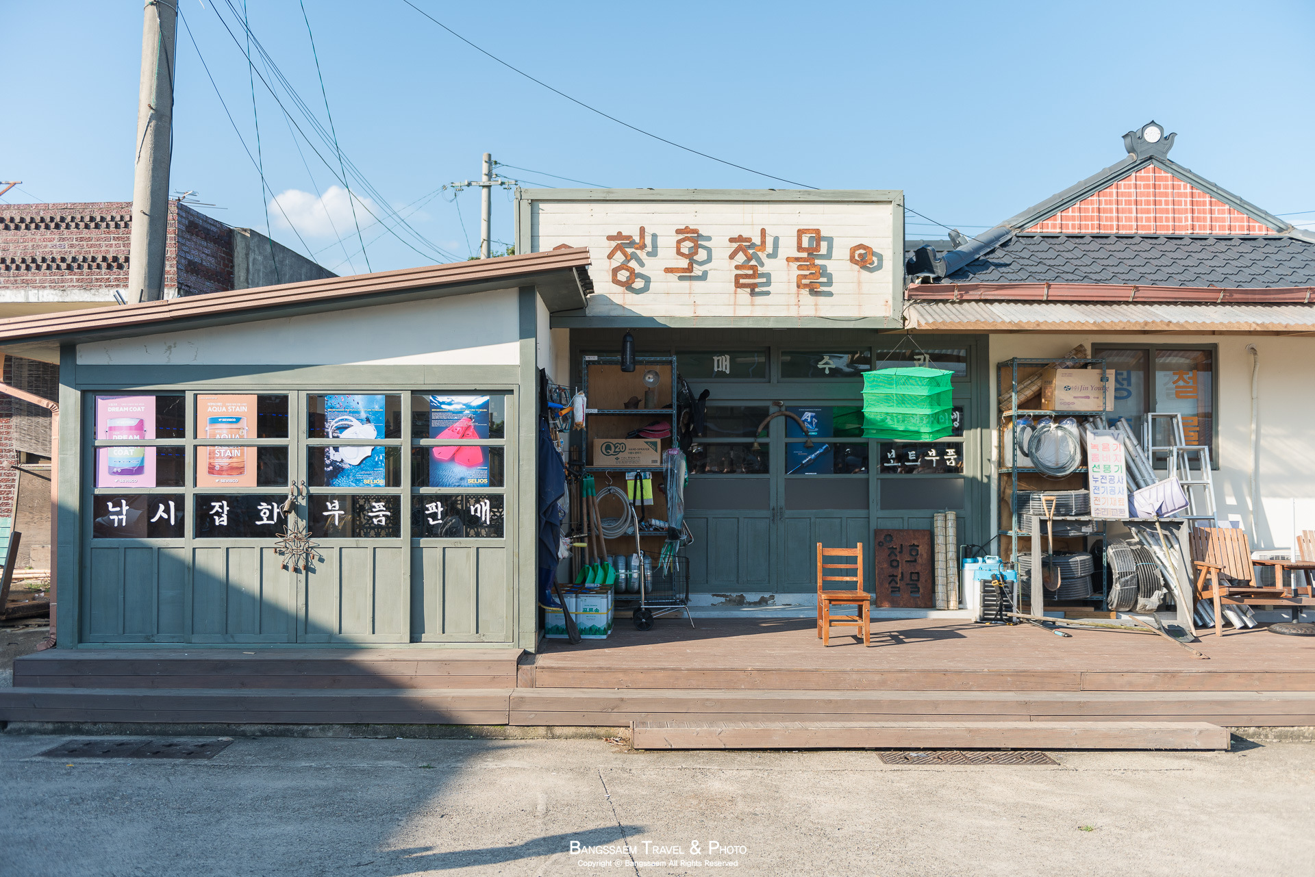 청호시장 청호철물 앞에서 인증 사진 한 장. 청호철물은 공진철물로 이름을 바꾸지 않고 원래 이름인 청호철물을 사용한 것일까? 드마라에서 봐도 실내 촬영이 대부분이었지 이렇게 가게 외관을 보여주는 촬영은 많지 않았던 것 같다. 간판이 참 예쁘다. 철물점과 너무 잘 어울리는 디자인의 청호철물 간판.
