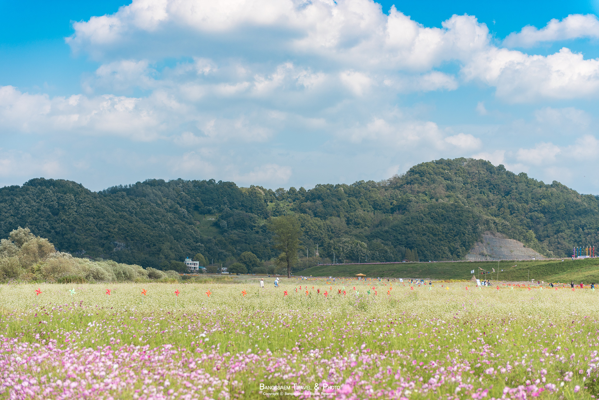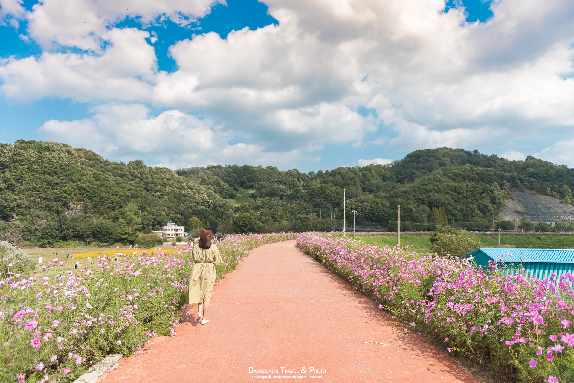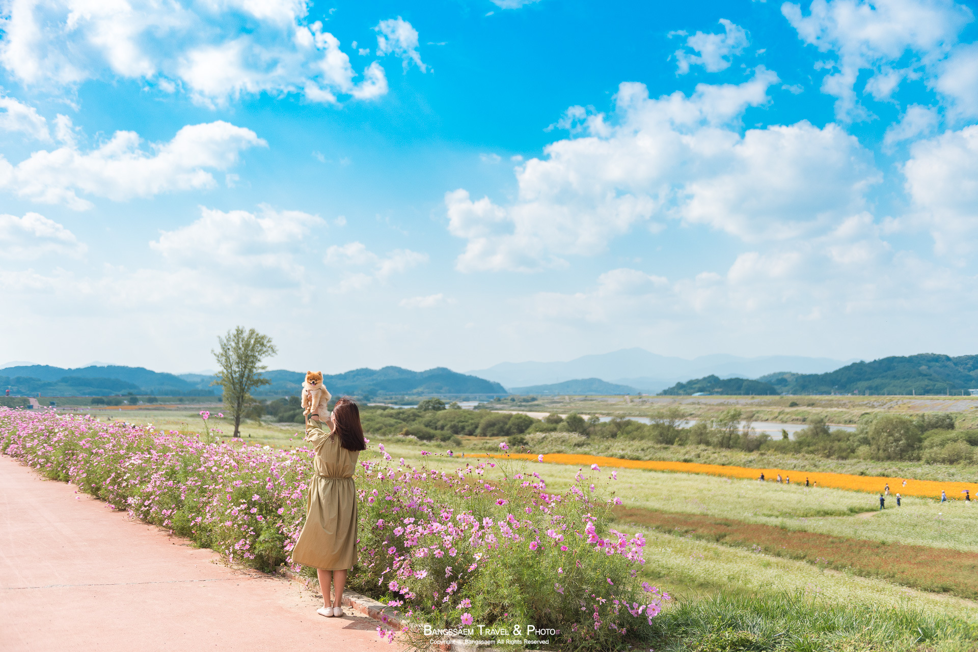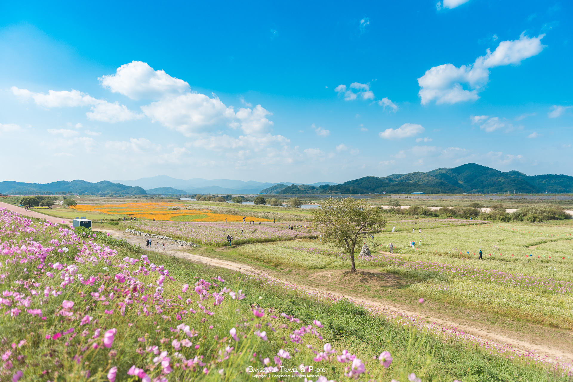 코스모스 꽃길에서 즐기는 행복한 가을 산책. 그래서 내가 항상 코스모스길이 아름다운 곳으로 여기 함안 악양둑방길을 추천하게 된다.