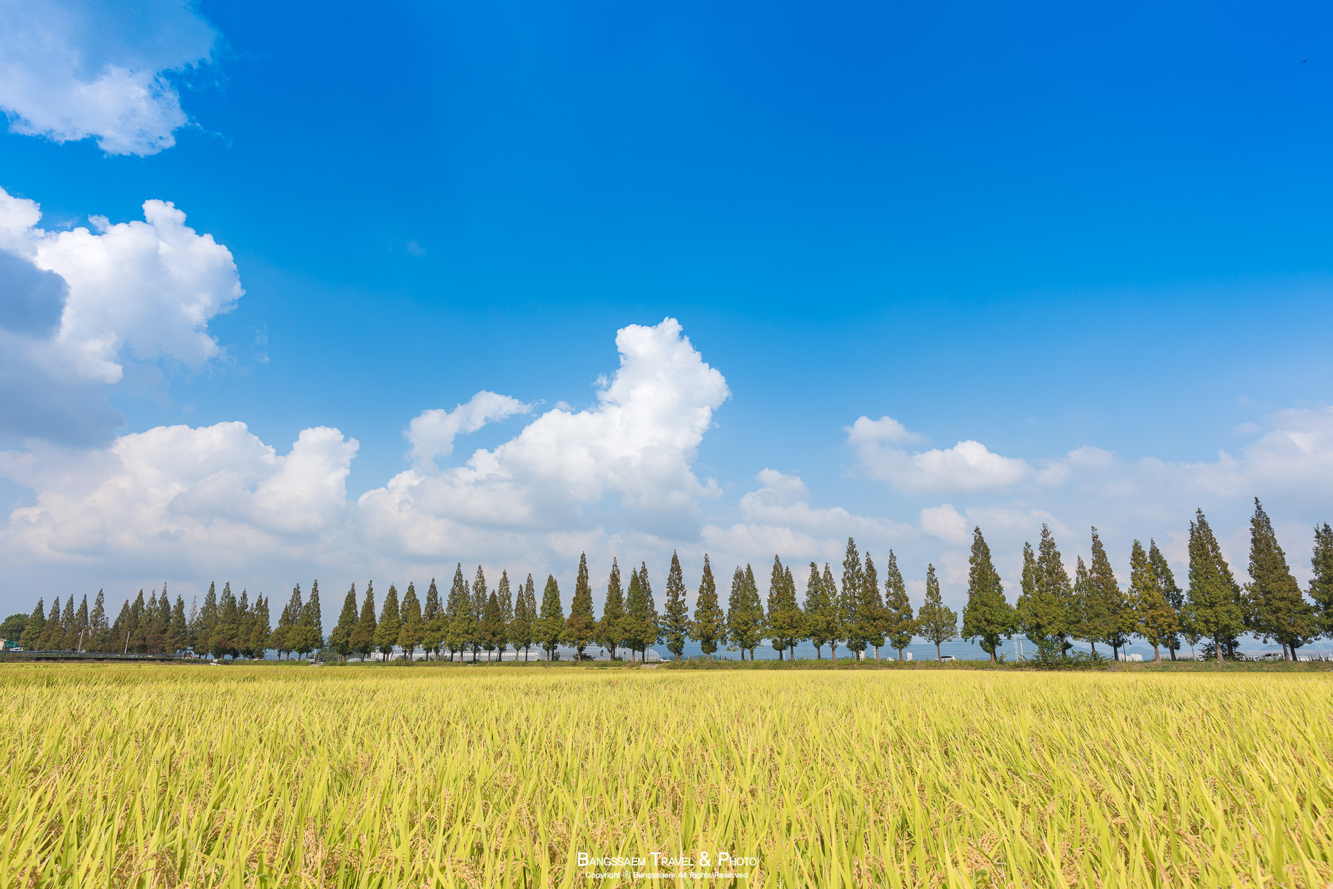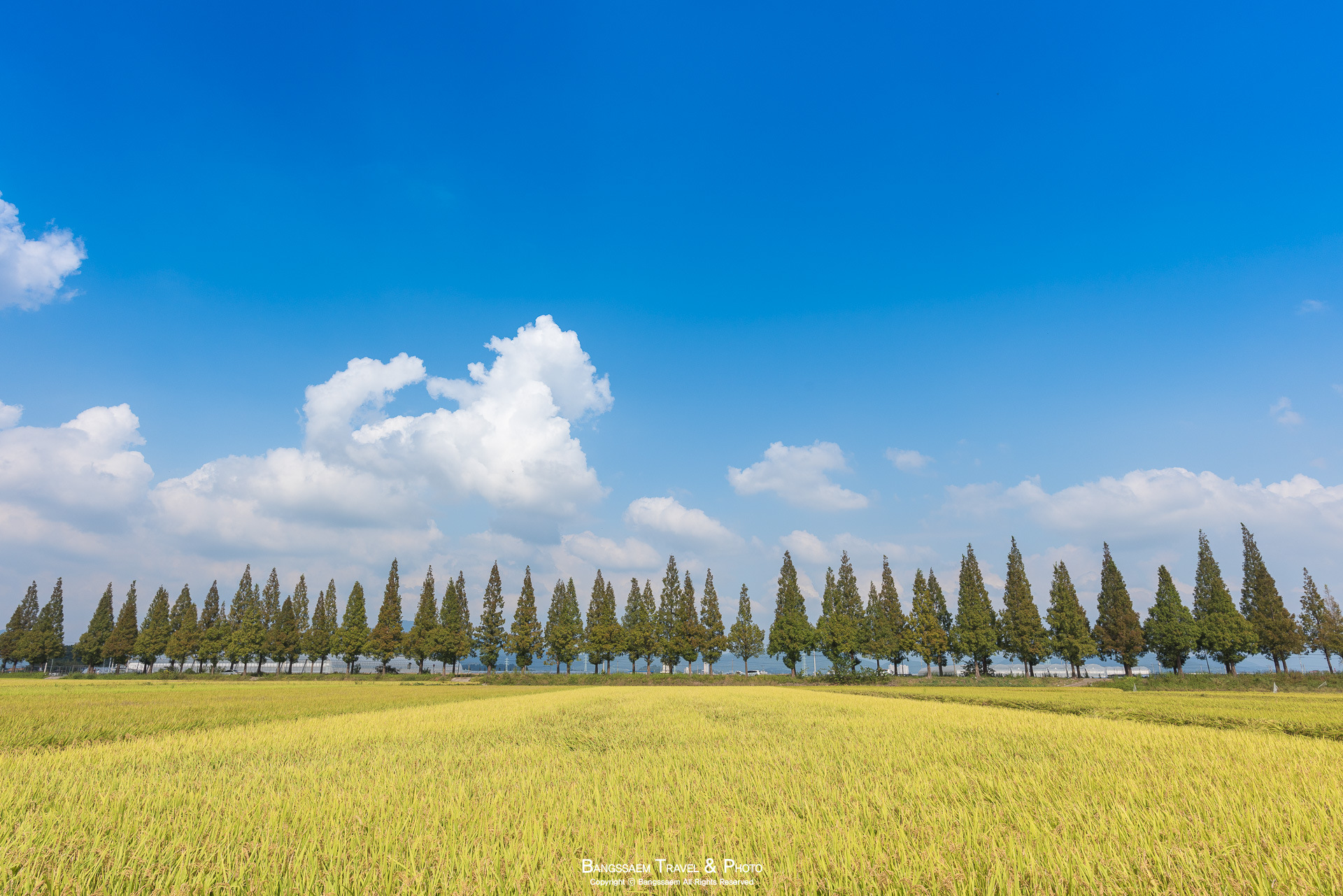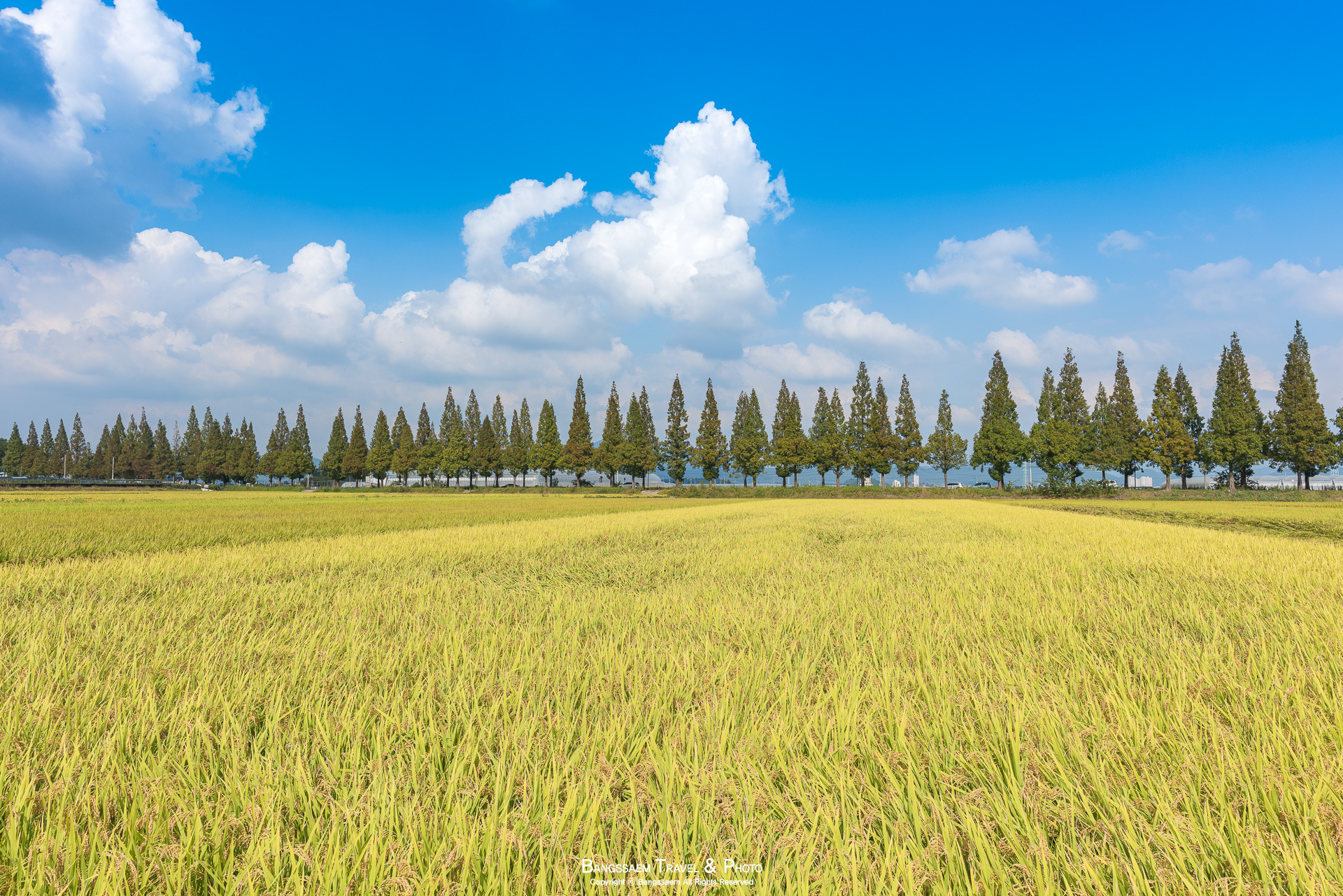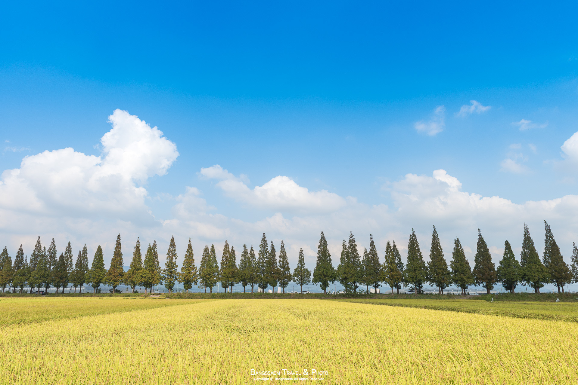 가을, 벼들이 황금색으로 익어가는 시기이다. 창원 죽동마을 메타세콰이어길은 1년에 2번, 가장 많은 사람들이 찾아오는 시기가 있는 것 같다. 초록이 가득한 여름, 모내기를 위해서 논에 물을 가득 채워놓았을 때 그 반영 사진을 찍기 위해 찾아오는 사진을 취미로 하는 사람들, 그리고 가을이 짙어지면 조금씩 갈색으로 그 색을 바꿔가는 메타세콰이어길을 만나기 위한 사람들이 몰리는 시기, 그 두 시즌이 가장 인기가 많은 것 같다.