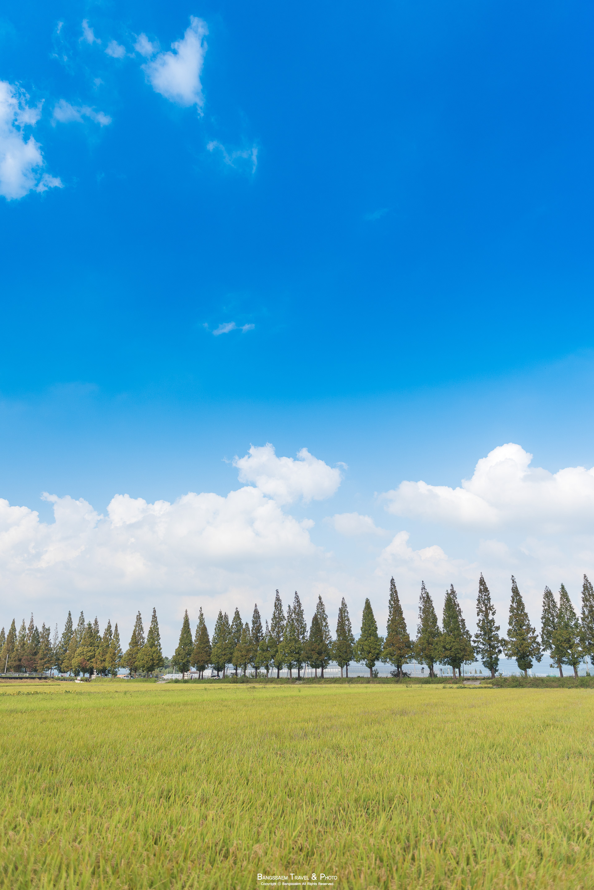 그런데 나는 지금 이 모습의 창원 죽동마을 메타세콰이어길도 참 좋아한다. 하늘은 푸르고, 나무에도 아직이 초록이 남아있다. 그리고 논의 벼들은 고운 황금색으로 물들기 시작한다. 1년 중 아주 잠시 만날 수 있는 이 모습 또한 아주 매력적인 것 같다.