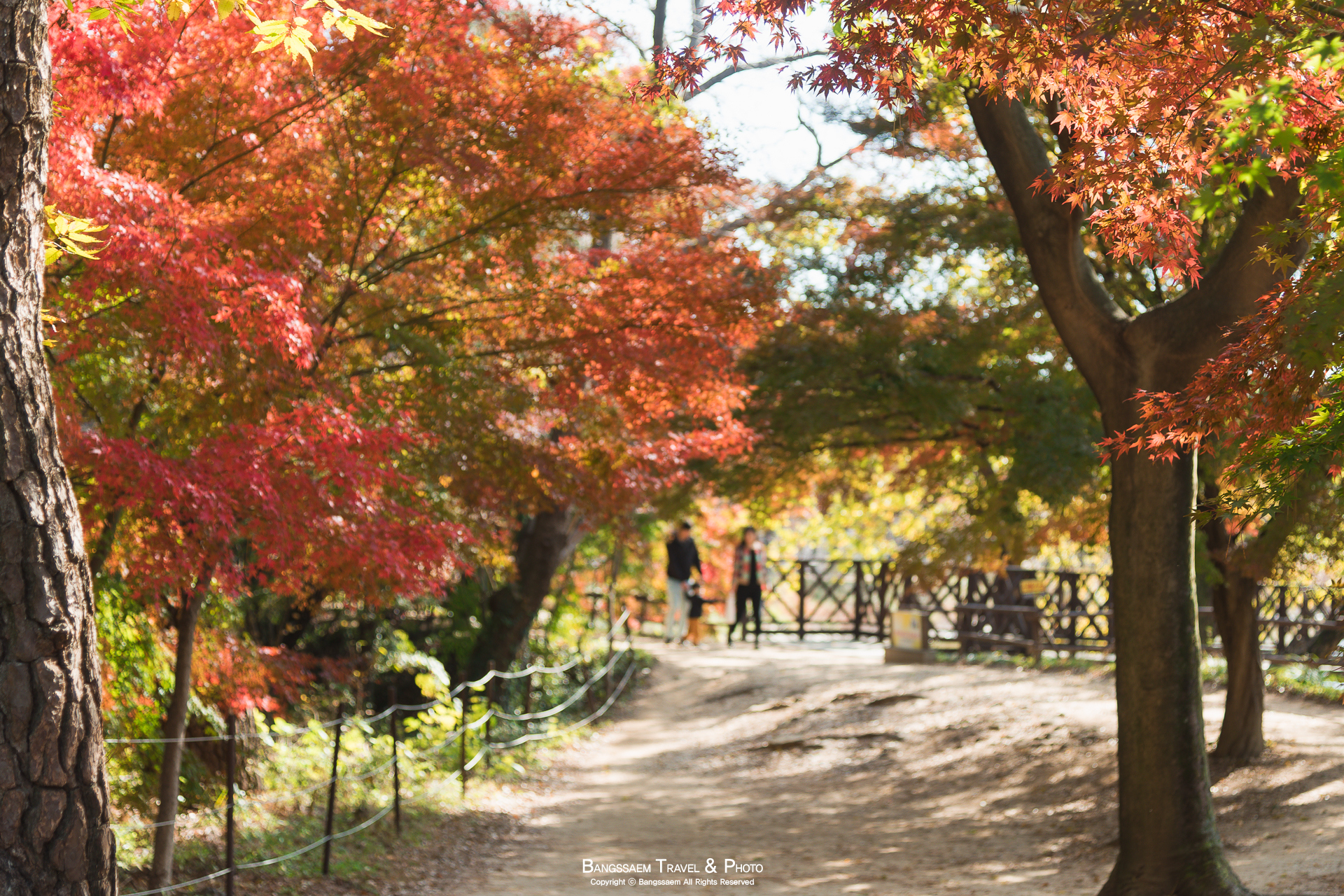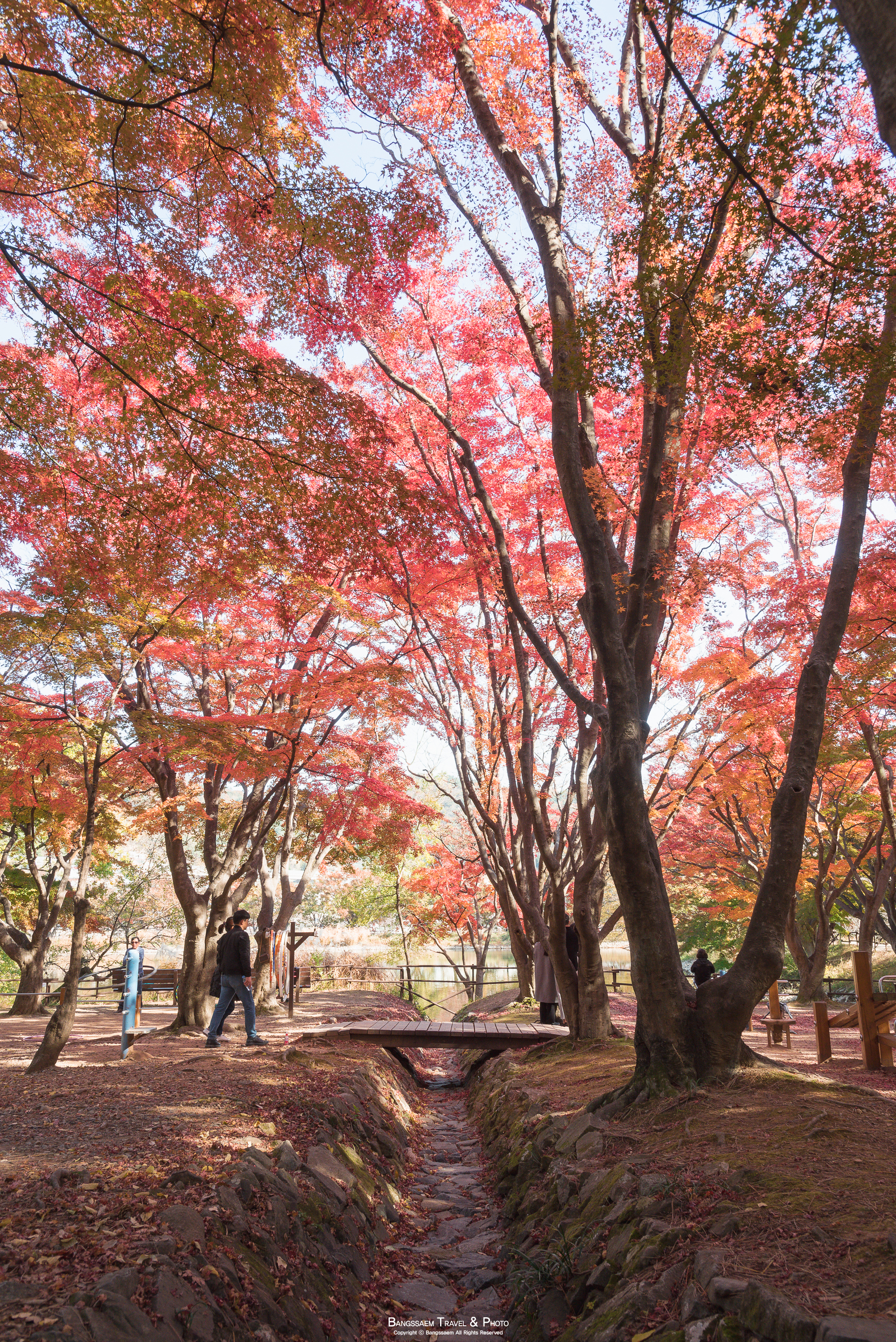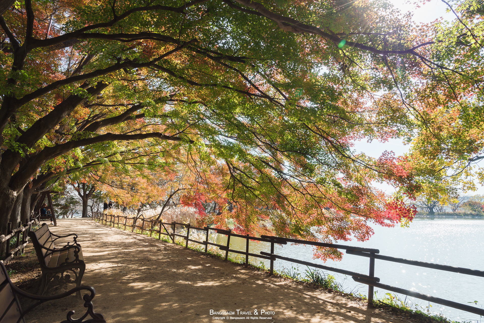 볕도 잘 들어오는 자리이고 나무들이 마치 지붕 인양 가지를 위에서 옆으로 축 늘어뜨리고 있어서 정말 단풍 터널을 걷는 것 같은 곳이다. 빛이 좋은 날에는 정말 화려한 색의 가을 단풍들을 만날 수 있다.