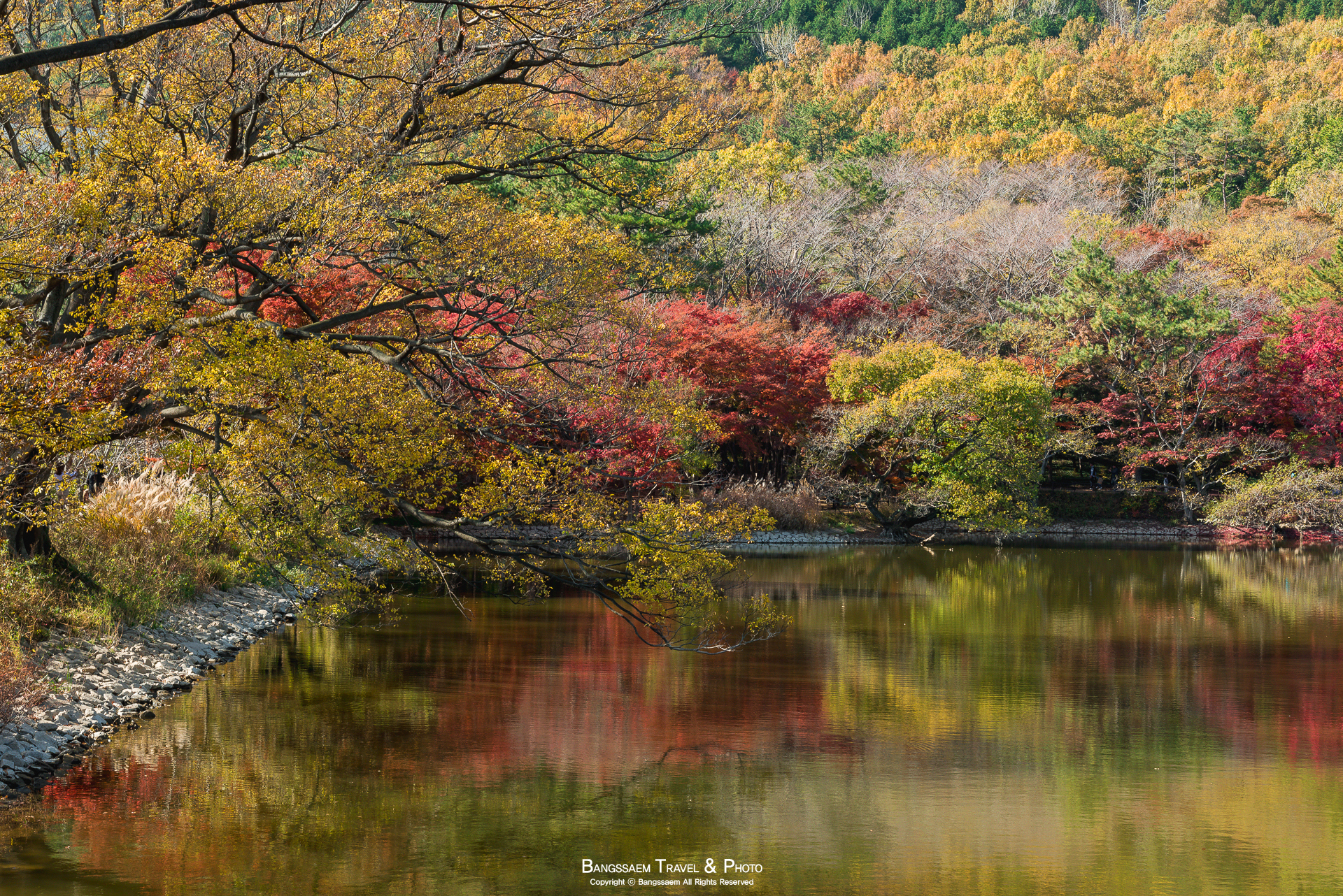 물에 비친 단풍들의 모습을 보니 꼭 누군가가 물 위에 물감을 풀어놓은 것 같다는 느낌도 든다.