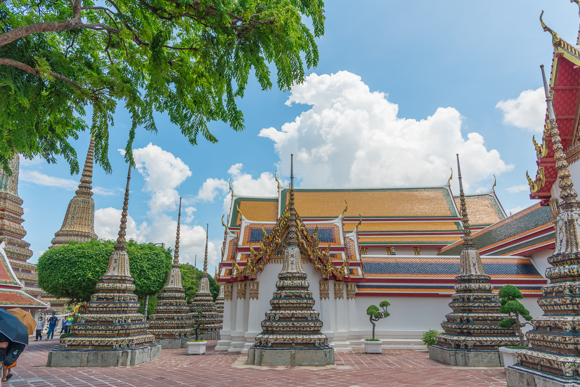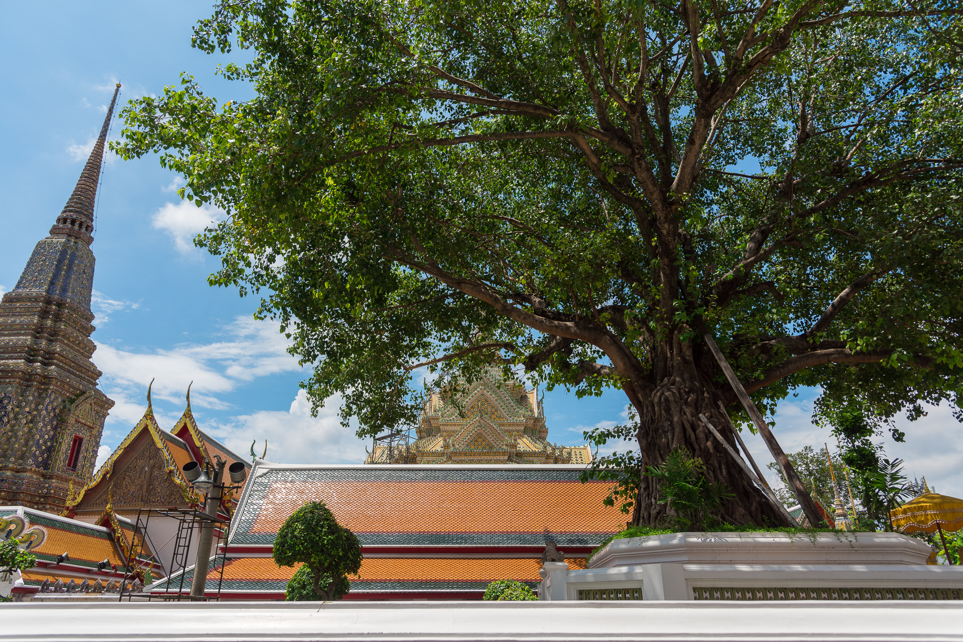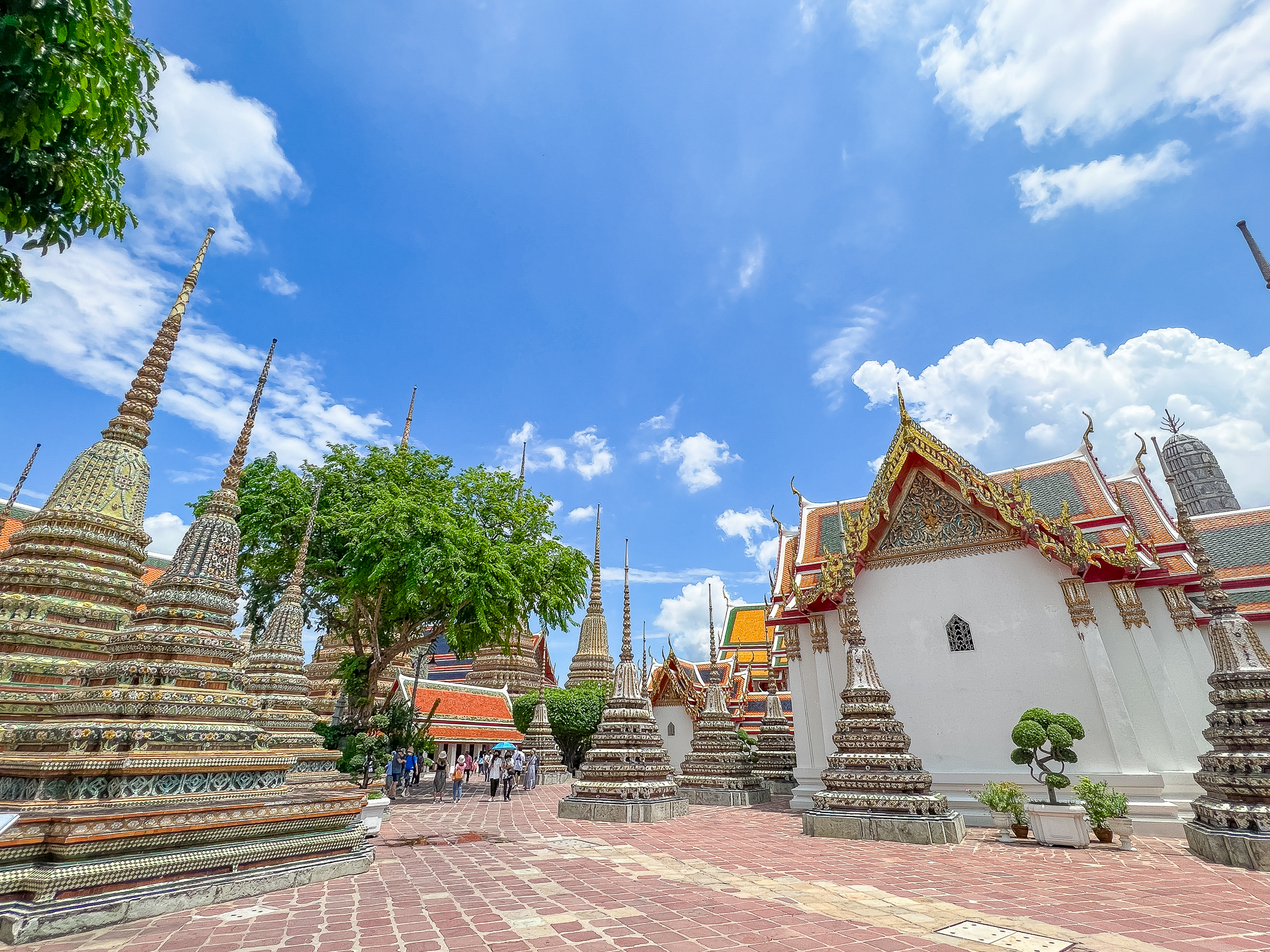 나무 그늘 아래로 잠시 피신해서 바라본 방콕 왓포 내부 풍경.