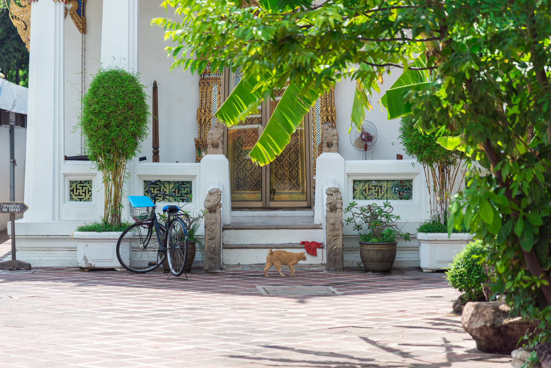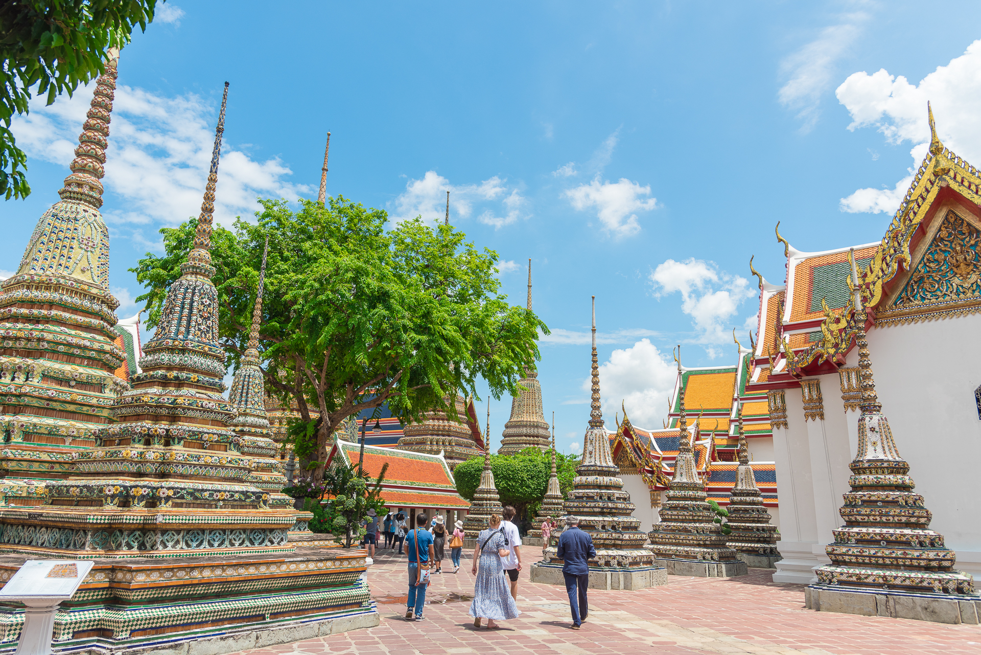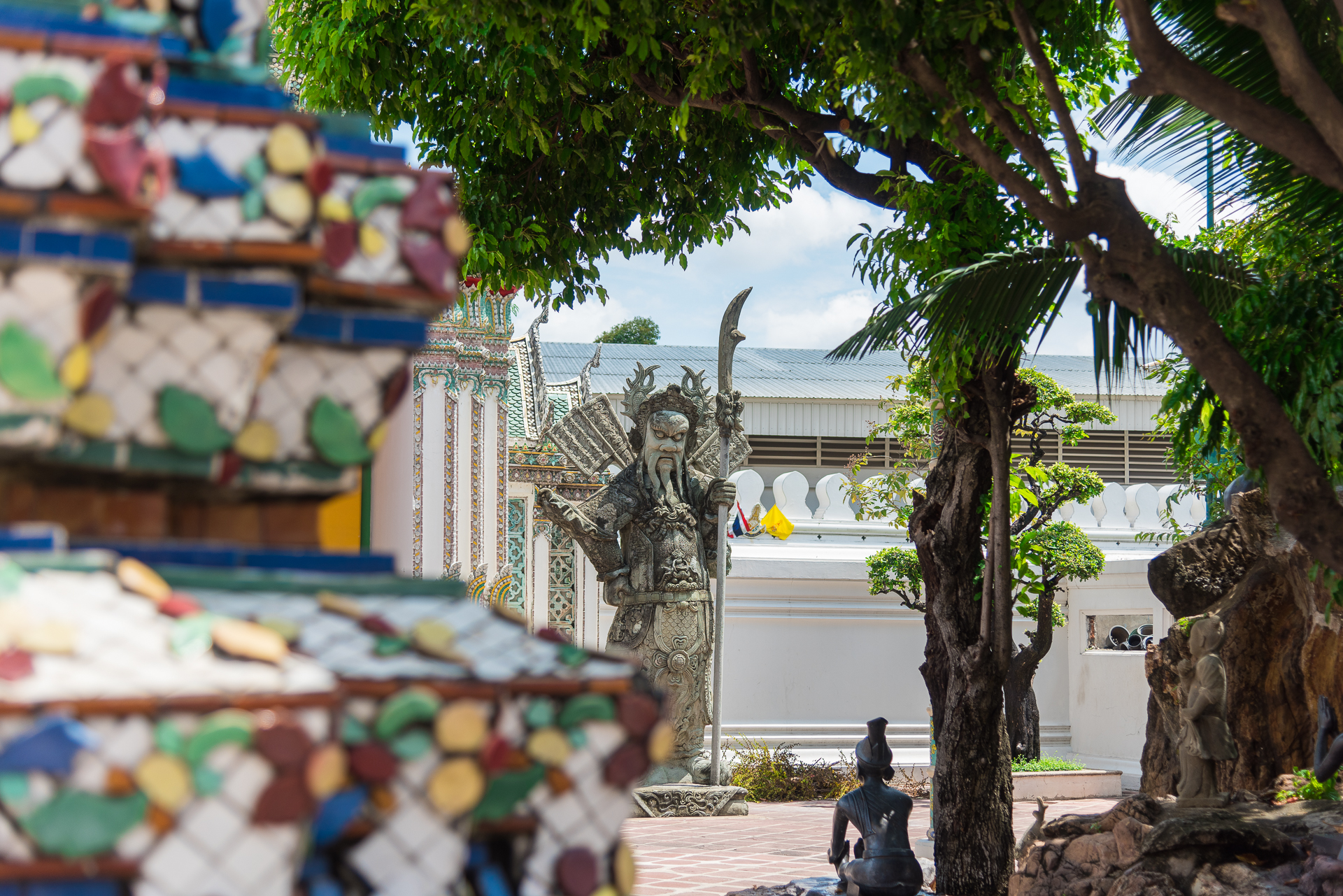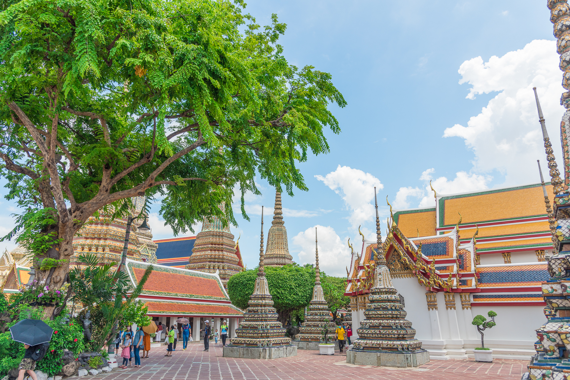 나무 그늘 아래로 잠시 피신해서 바라본 방콕 왓포 내부 풍경.