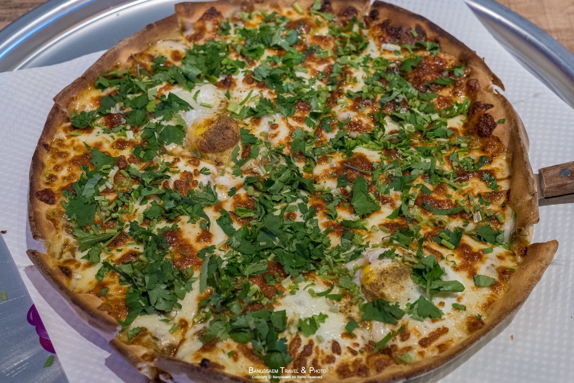 쉽게 만나볼 수 없는 메뉴이다. 고수피자라니! 고수를 싫어하는 사람이라면 경기를 일으킬 수도 있는 메뉴이다. 하지만 나와 옆지기는 뭐,, 고수 좋아한다. 그리고 맛있다고 하니 당연히 그 맛을 직접 보고 싶다.