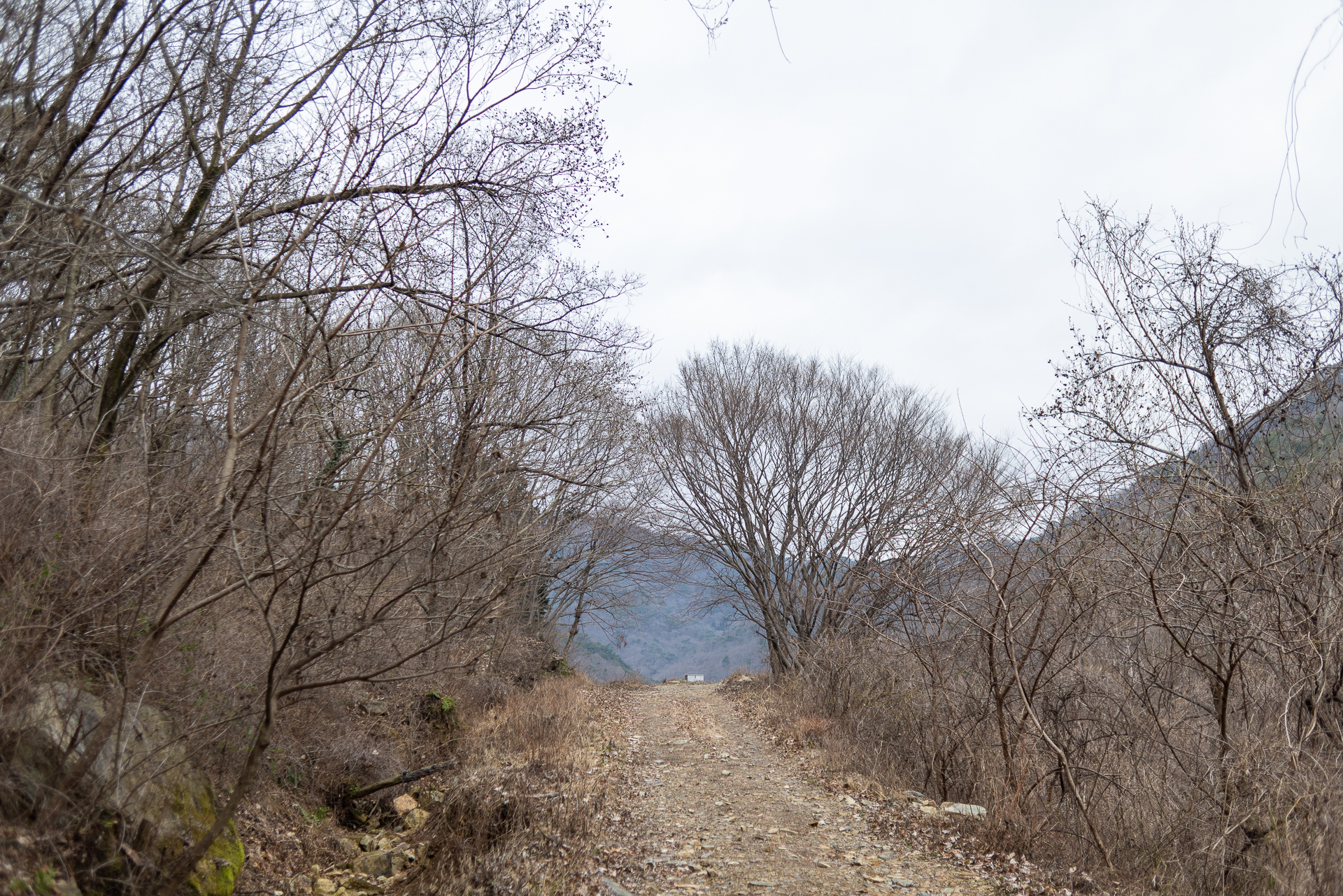 풀도 많이 자랐고 잡목도 너무 많이 자라 있다. 길이 너무 좋지 않아 방방이는 안고 이동하기로 결정.