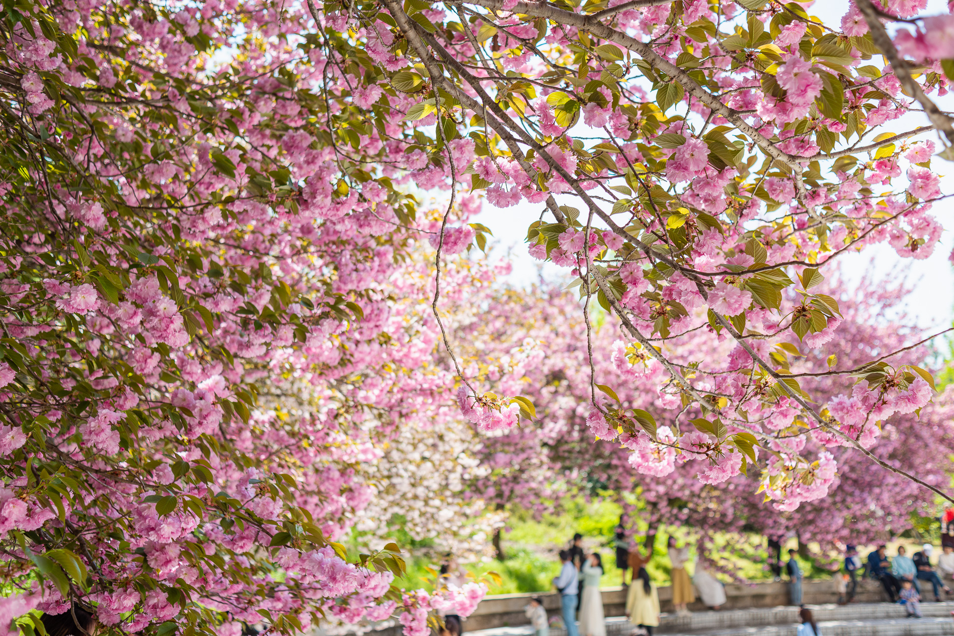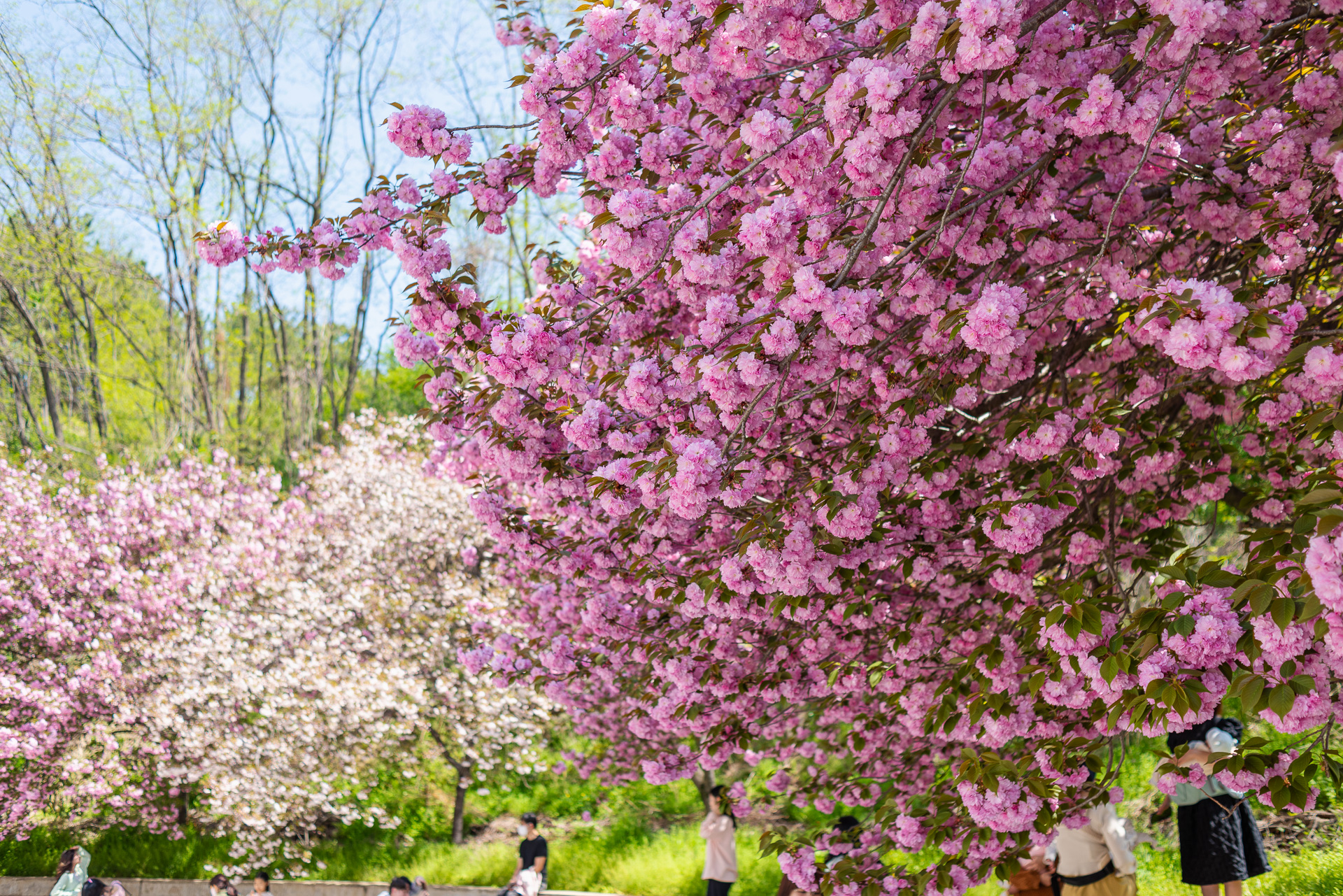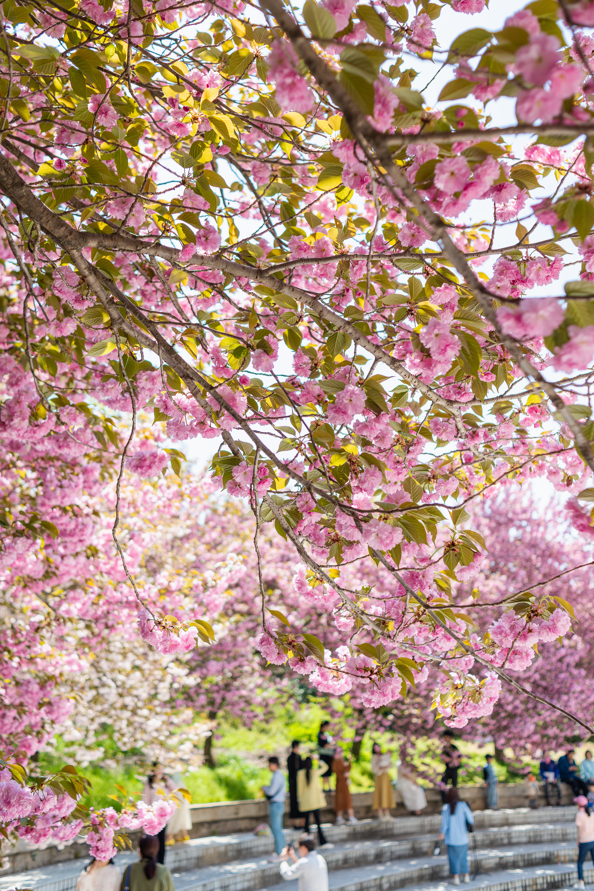 겹벚꽃의 매력에 푹 빠진 사람들.