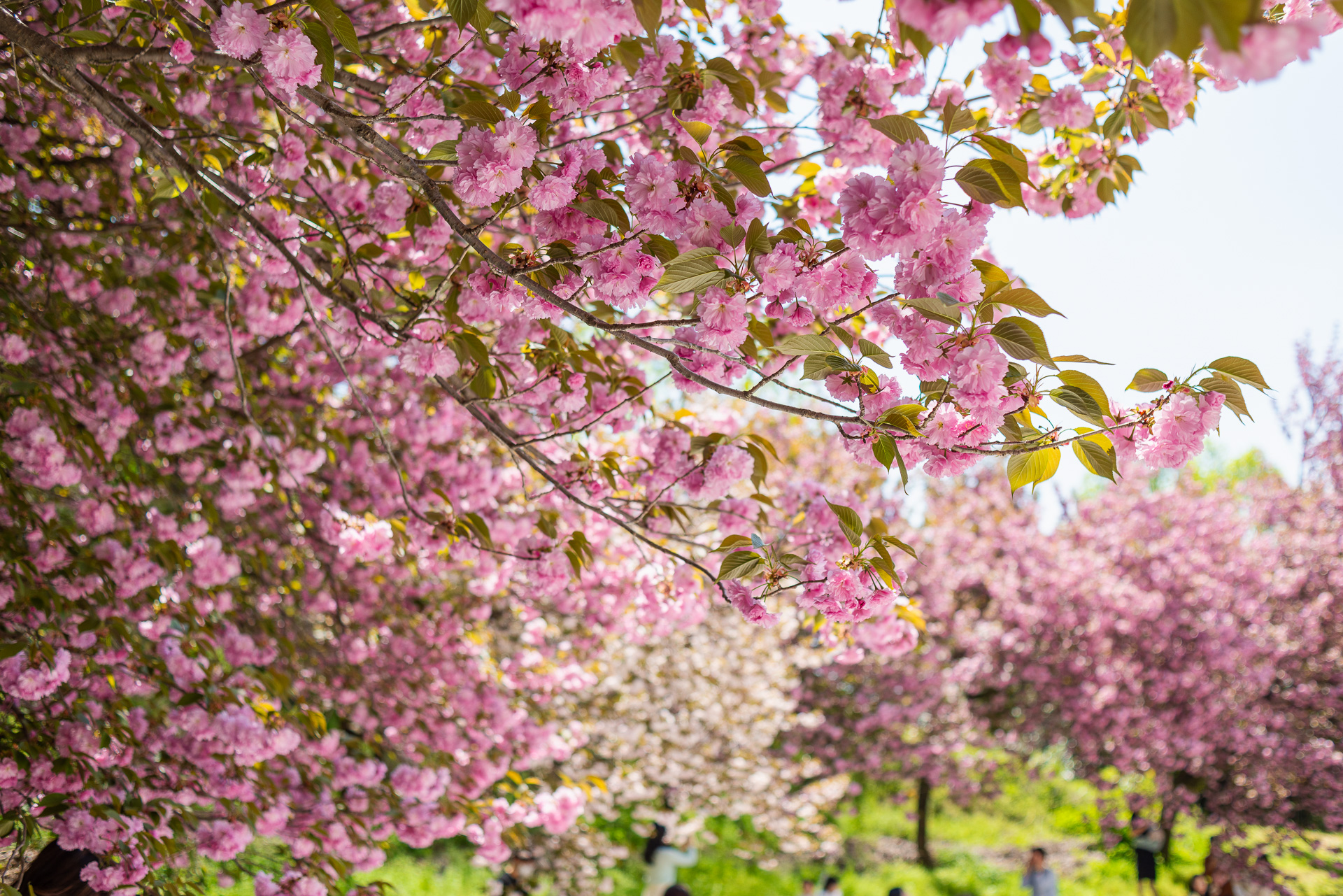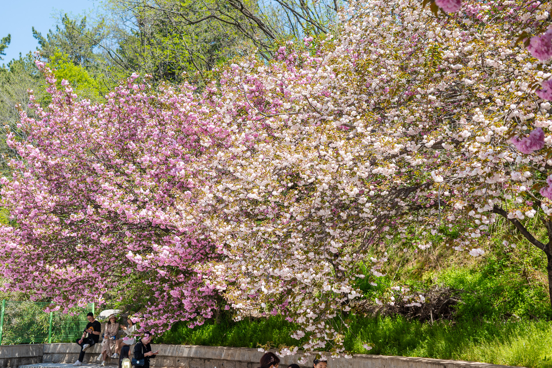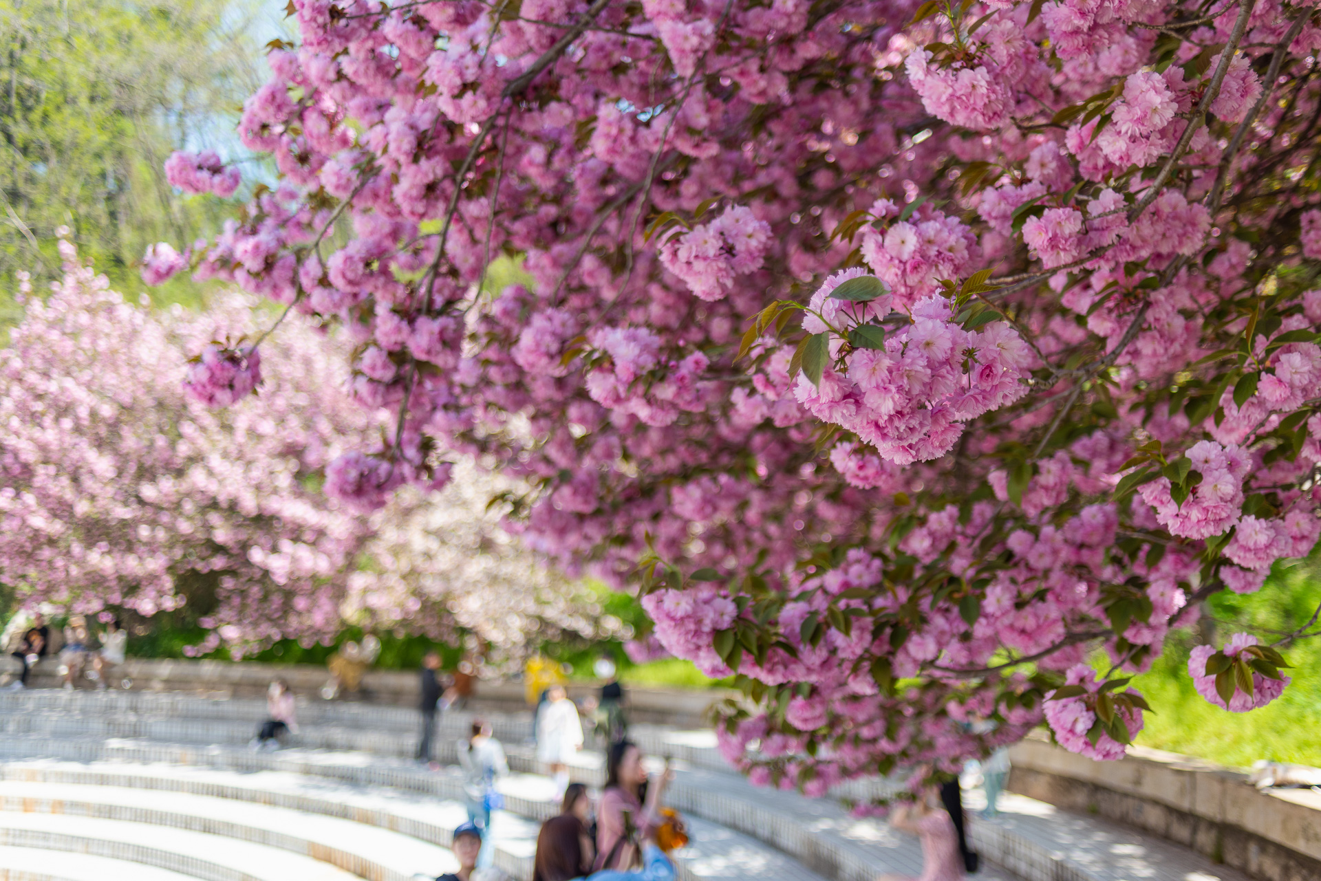겹벚꽃의 매력에 푹 빠진 사람들.