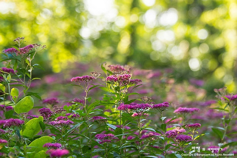 편백나무 숲속 수국들의 축제, 경남 고성 만화방초