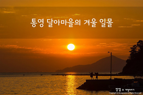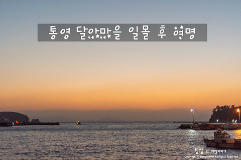 방쌤의 여행이야기통영 일몰 명소 / 통영 달아마을 / 통영 일몰통영 달아공원 / 달아마을 일몰 / 달아공원통영 달아마을 일몰 경남 통영의 일몰 명소, 달아마을정확하게는 달아항, 또는 달아선착장이라고 부르는게 맞을 것 같다. 사실 사람들이 더 많이 찾는 장소는 달아마을 조금 위쪽에 있는 달아공원이다. 주차장도 넓게 만들어 놓았고, 공원도 나름 예쁘게 잘 꾸며놓았다. 그리고 저 멀리 전망대 아래 바다가 내려다 보이고, 그 바다 위로 지는 아름다운 일몰을 만날 수 있는 곳이다. 하지만 이상하게 나는 여기 달아마을, 달아항에서 바라보는 일몰이 더 좋다. 조금 더 바다 가까이에서, 또 구름이 머리 위로 흘러가는 그 느낌이 너무 좋아서 그런 것 같다. 겨울이 되면 더 자주 생각나는 곳이다. 해가 지는 위치가 달아항..