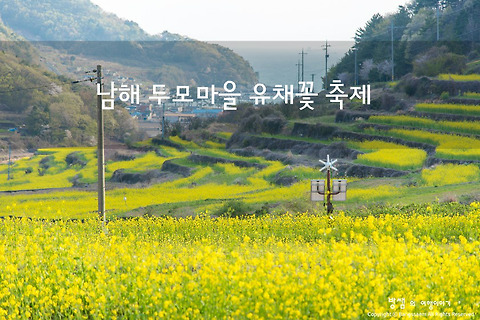 방쌤의 여행이야기 남해여행 / 장평소류지 남해튤립축제 / 남해두모마을 남해봄꽃 나들이 지난 밤에 예전에 다녀온 태종대 사진들을 정리하다가 갑자기 바다가 보고싶다는 생각이 들었다. 동해로 갈까? 서해로 갈까? 남해로 갈까? 나라의 삼면이 바다로 둘러싸여있는 아름다운 곳에서 살고있다보니 바다를 한 번 보러가는데도 이렇게 행복한 고민을 해야한다. 사실 같은 바다이지만 동해, 서해, 남해가 가지는 바다의 매력은 모두 색다르다. 서해는 잔잔함과 일몰이 아름다운 곳이고, 동해는 시원하게 부딪히는 파도소리와 끝도 없이 펼쳐지는 그 푸르름이 그리고 마지막 남해는 잔잔하면서도 색이 너무 곱고 주위의 크고 작은 섬들과 아름답게 조화를 이루는 것이 가장 큰 매력이다. 오늘 삘이 꽂힌 곳은 다름아닌... 얼핏 보면 에메랄드빛..