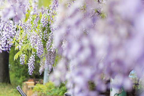 봄비 내리는 날 만난 보랏빛 등나무 꽃