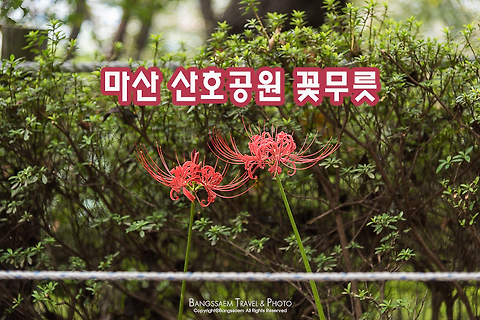 방쌤의 여행이야기마산 산호공원 / 산호동꽃무릇축제산호공원꽃무릇축제 / 마산 꽃무릇마산 산호공원 꽃무릇축제 지난 주말 경남 창원에는 가을비가 보슬보슬 내렸다. 이제는 불어오는 바람에서도 여름의 기운은 어느덧 모두 사라지고, 가을의 기운이 느껴지기 시작한다. 가을이 되면 항상 생각나는 꽃이 있다. 물론 메밀과 코스모스가 더 유명하게 알려진 가을의 전령이기는 하지만 코스모스 시즌이 본격적으로 시작되기 전에 굉장히 짧게 피고, 지는 시기가 지나가는 꽃이 있다. 이름이 다소 생소한 사람들도 많이 있을 것 같은데 그 꽃의 이름이 바로 꽃무릇이다. 돌 틈에서 자라는 마늘쫑과 그 모습이 닮았다고 해서 석산화라는 이름으로도 불린다. 대표적인 군락은 영광 불갑사, 고창 선운사, 그리고 함평 용천사 등이 있다. 작년에는 저..