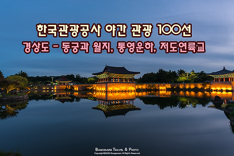 방쌤의 여행이야기한국관광공사 야간 관광 100선 / 야간 관광경주 동궁과 월지 / 통영운하 / 저도 연륙교야간 관광 100선 경상도 얼마 전 한국관광공사에서 한국을 대표할 수 있는 야간 관광지 100곳을 선정, 발표했다. 마땅히 밖으로 여행을 다닐만한 환경이 아닌 요즘, 한국관광공사가 발표한 야간 관광 100선에 포함된 장소들 중에 내가 이전에 직접 다녀왔고, 또 내 눈에도 정말 예쁘게 보였던 장소들을 몇 군데 정해보았다. 전국적으로 고르게 분포되어 있었는데 일단은 그 중에서 내가 지금 살고있는 경상도에 위치한 장소들을 먼저 한 번 정리해보기로 했다. 우리나라도 찾아보면 야경이 아름다운 곳들이 참 많이 있다. 그만큼 조명이 아름답게 설치된 도시들이 많다는 의미겠지? 꼭 붐비는 도시가 아니더라도 한적하면서..