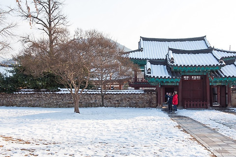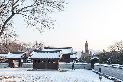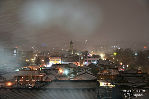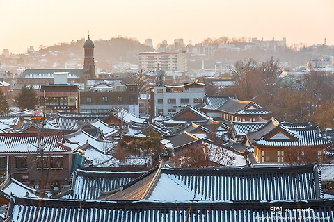 전주 한옥마을, 눈에 하얗게 덮인 한옥마을 그리고 일몰