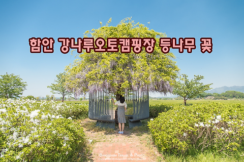 방쌤의 여행이야기함안강나루오토캠핑장 등나무경남 등나무 꽃 / 함안 등나무꽃함안 강나루오토캠핑장 등나무 꽃 요즘 경남 함안에 아주 핫한 장소가 하나 생겼다. 꼭 새집 모양처럼 만들어진 구조물이 하나 있고, 그 위로는 등나무 꽃이 활짝 피어있다. 꼭 동화 속 한 장면 같은 모습의 사진들이 SNS상에 올라오기 시작하면서 지금은 굉장히 많은 사람들이 찾는 인기 명소가 되었다. 그래도 주변이 워낙 넓은 곳이라 사람들로 붐비는 그런 모습이 보이지는 않는다. 또 잠시 머물며 사진만 찍고 자리를 뜨는 곳이라 내가 갔을 때는 나름 한적하다는 느낌이 들기도 했었다. 사진의 경우 굉장히 많은 보정 작업이 이루어지는 때가 대부분이다. 그래서 실제 그 모습을 만나곤 살짝 실망하게 되는 경우도 있다. 여기도,, 음,, 조금은 그..