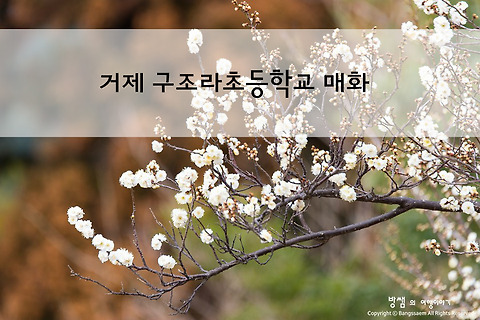방쌤 여행이야기거제 매화 / 거제 구조라초등학교 / 매화개화거제 춘당매 / 구조라초등학교 매화거제 구조라초등학교 매화 얼마 전 2월 중순에도 한 번 다녀온 거제 구조라초등학교. 지금은 폐교가 된 곳이지만 초등학교 옆의 테니스코트에서 테니스를 즐기기 위해, 또 봄이면 운동장 한켠에서 곱게 꽃을 피우는 매화들을 만나기 위해 여전히 많은 사람들이 찾고 있는 곳이다. 2월 중순에 찾아왔을 때는 매화들이 하나도 꽃을 피우지 않은 상태였는데 지금은 과연 어떤 모습일까? 많이 피었을까? 궁금한 마음을 안고 2주가 흐른 휴일 거제 구조라초등학교를 다시 찾았다. 거제 구조라초등학교 매화, 춘당매 고작 2주가 지났을 뿐인데 이전과는 전혀 다른 모습을 보여준다. 많이 폈구나~^^ 하늘이 흐려 조금 아쉬웠지만 곱게 꽃을 피운..